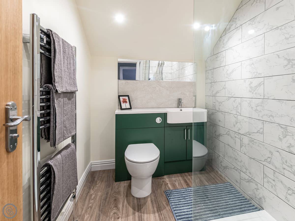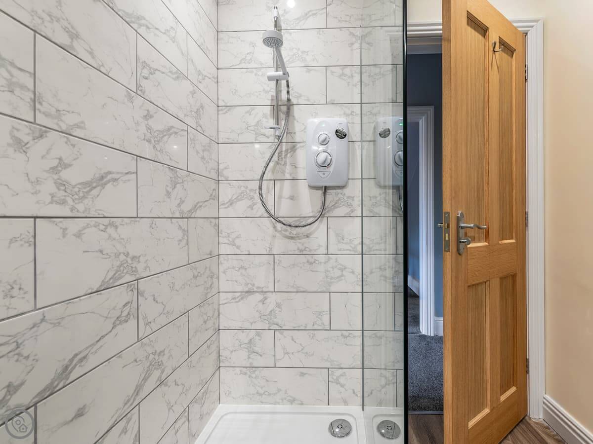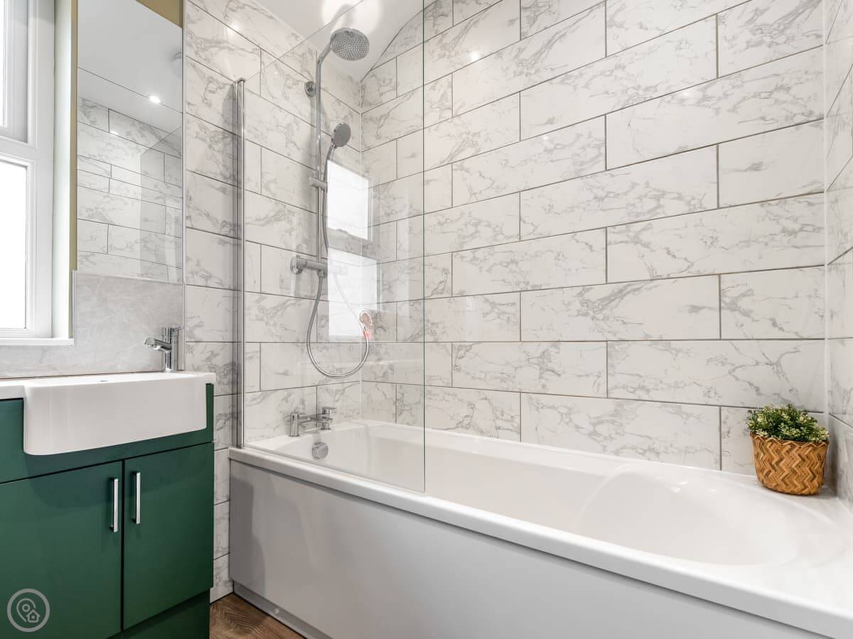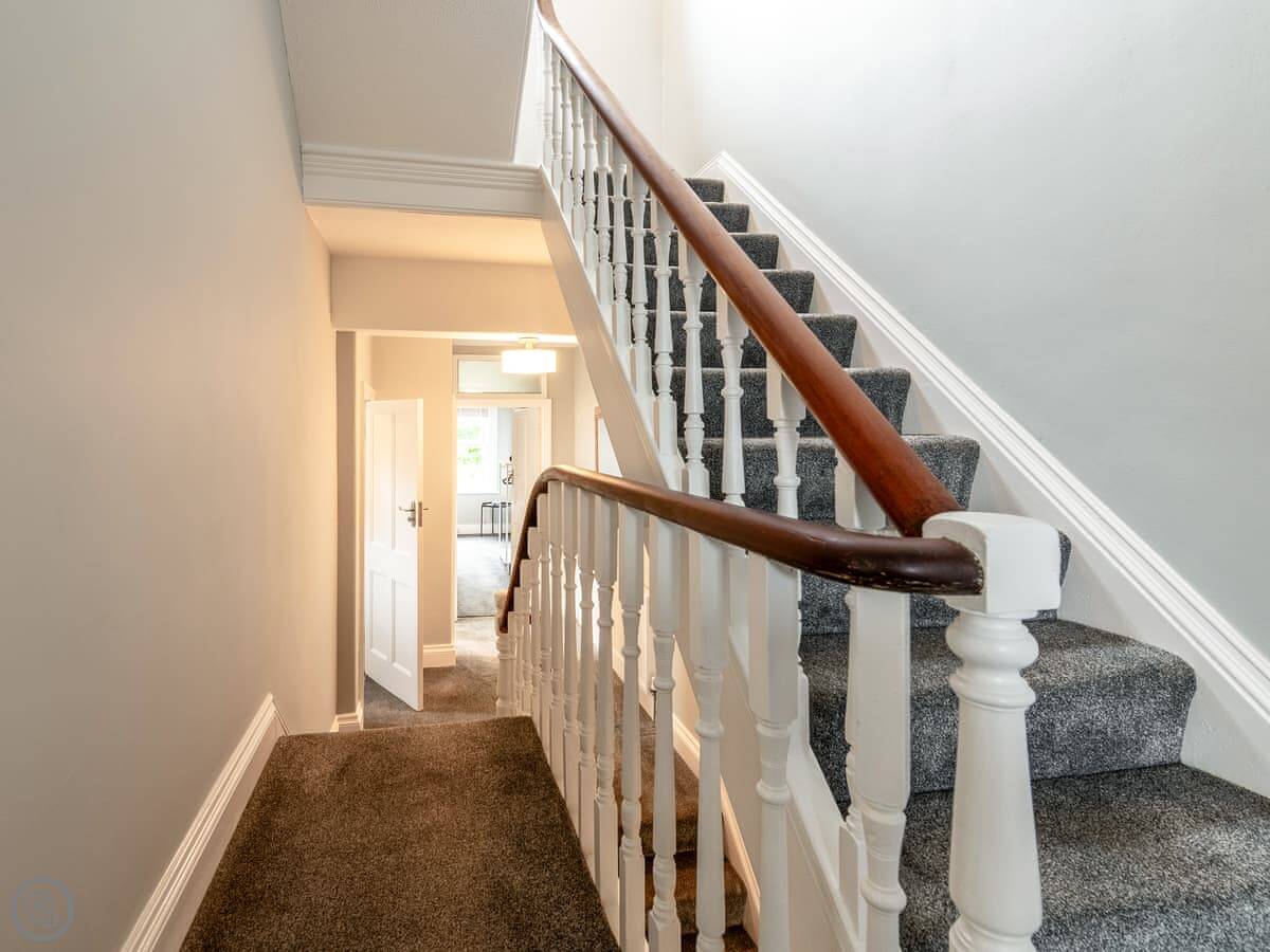 We’ve just finished renovating it. It’s got two bathrooms, one upstairs with a shower. Downstairs there’s a separate loo. The stairs in these houses are a bit narrower than modern ones.