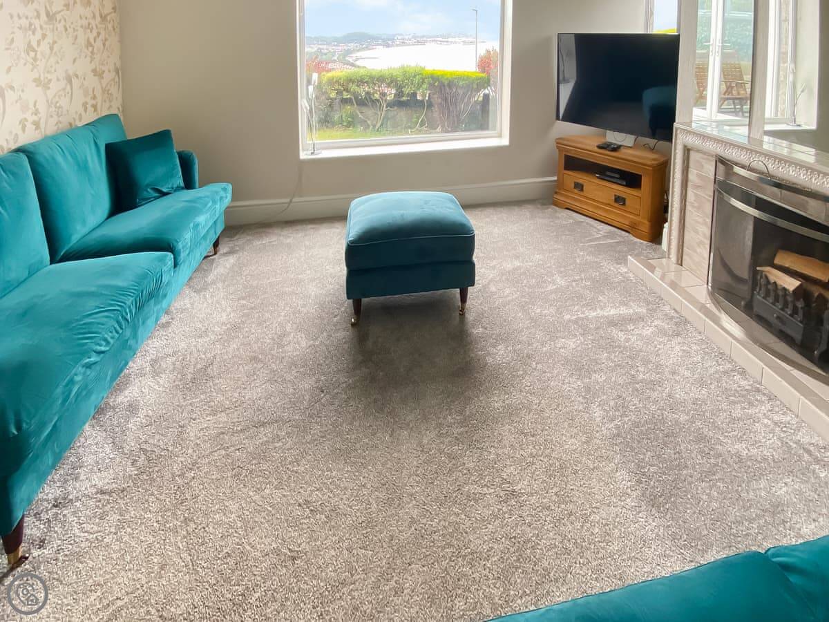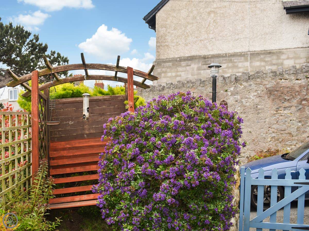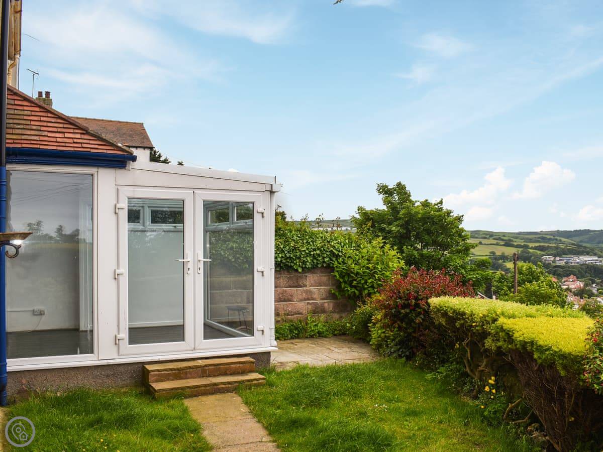 The Eyrie is a semi-detached house on Old Abergele Road in Colwyn Bay. It's on a hill, so you get a clear view of the bay from the back garden. It's not secluded, it's in a residential area. The garden is enclosed, which is handy.