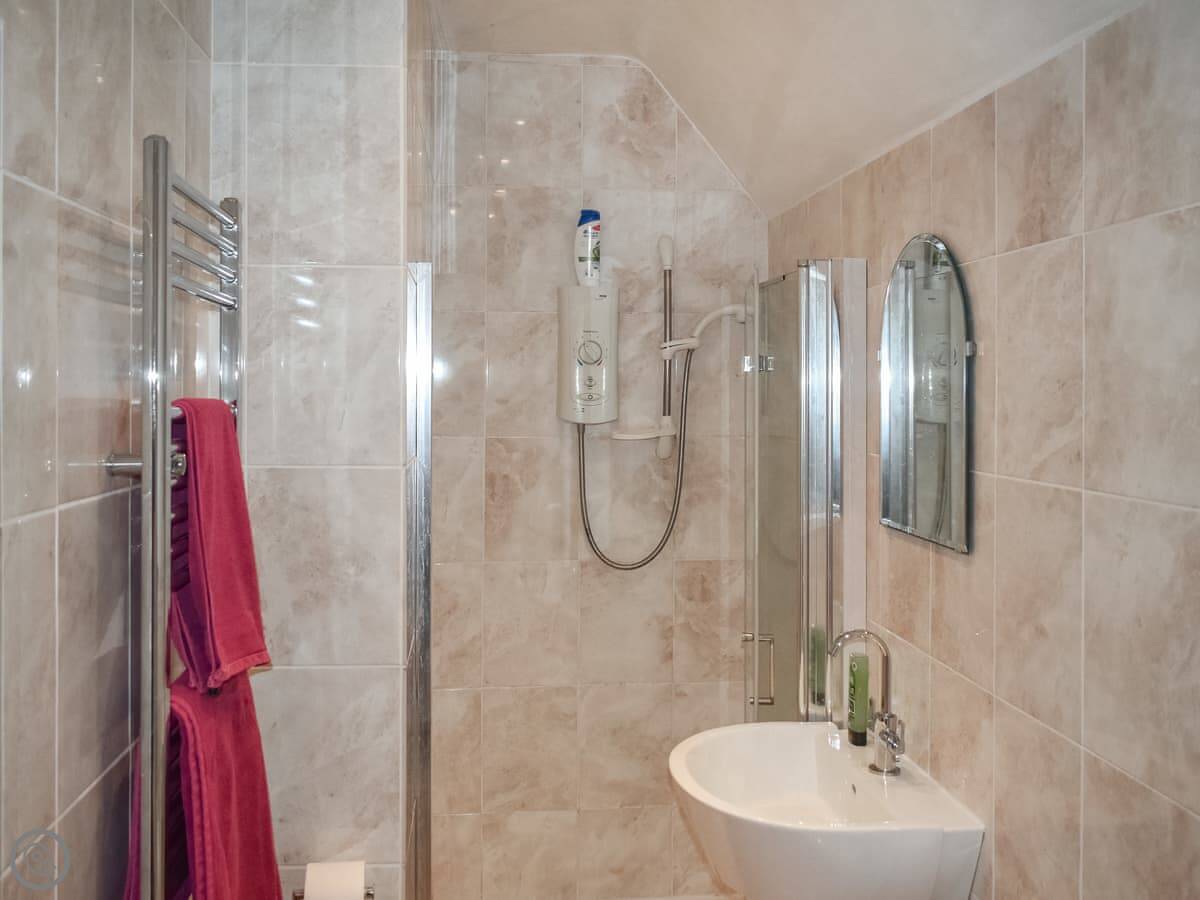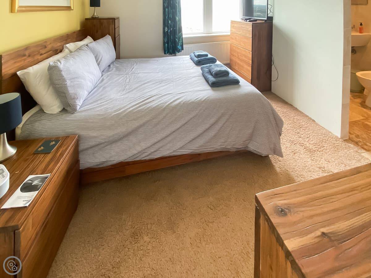 It sleeps six people in three bedrooms. There are two bathrooms, one is en-suite to the main bedroom and has a bath and a separate shower. The other two bedrooms have zip and link beds, so you can have them as twins or doubles. It's a 4 Star place, so it's comfortable and well-equipped.