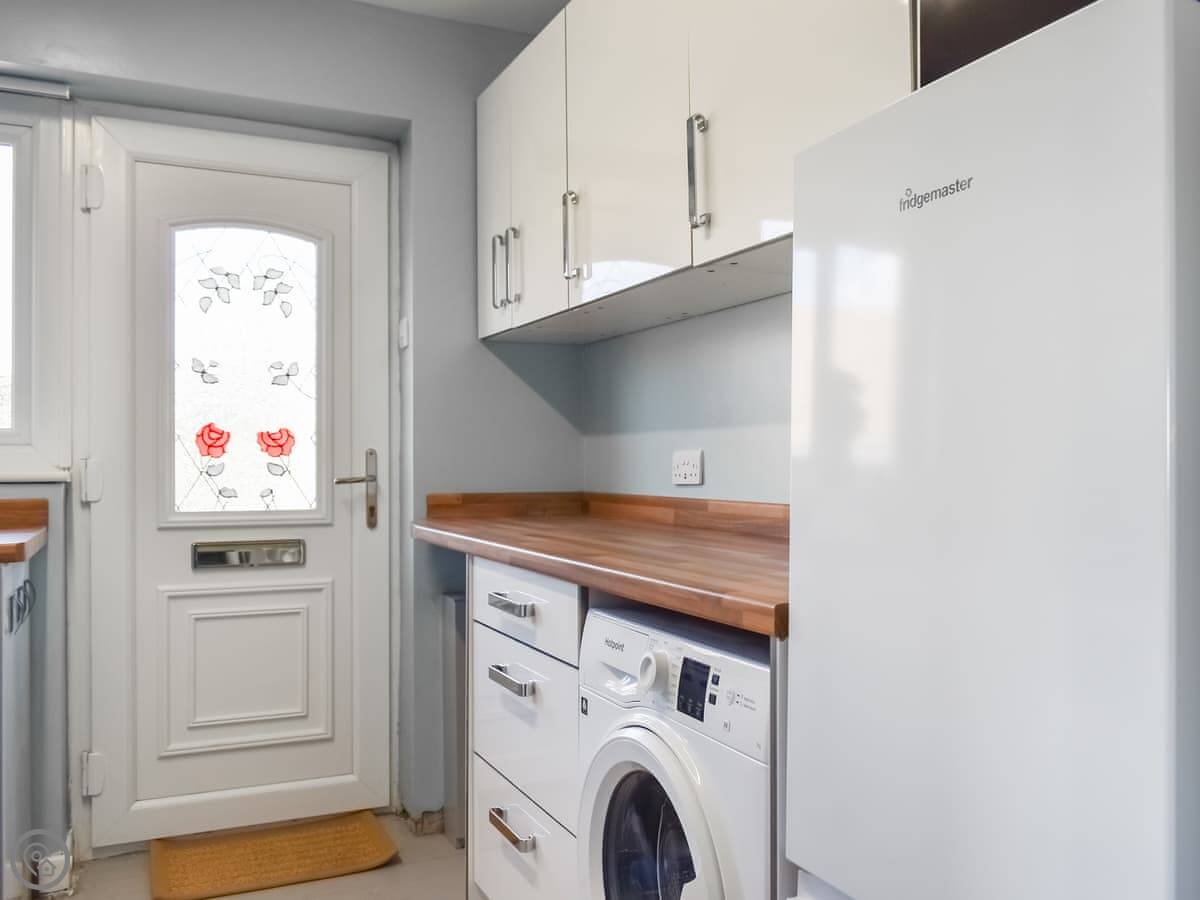 You've got a proper range cooker in the kitchen, a dishwasher, and a washing machine. The living area is open plan. Bedding and towels are included. There's a cot and highchair if you need them.