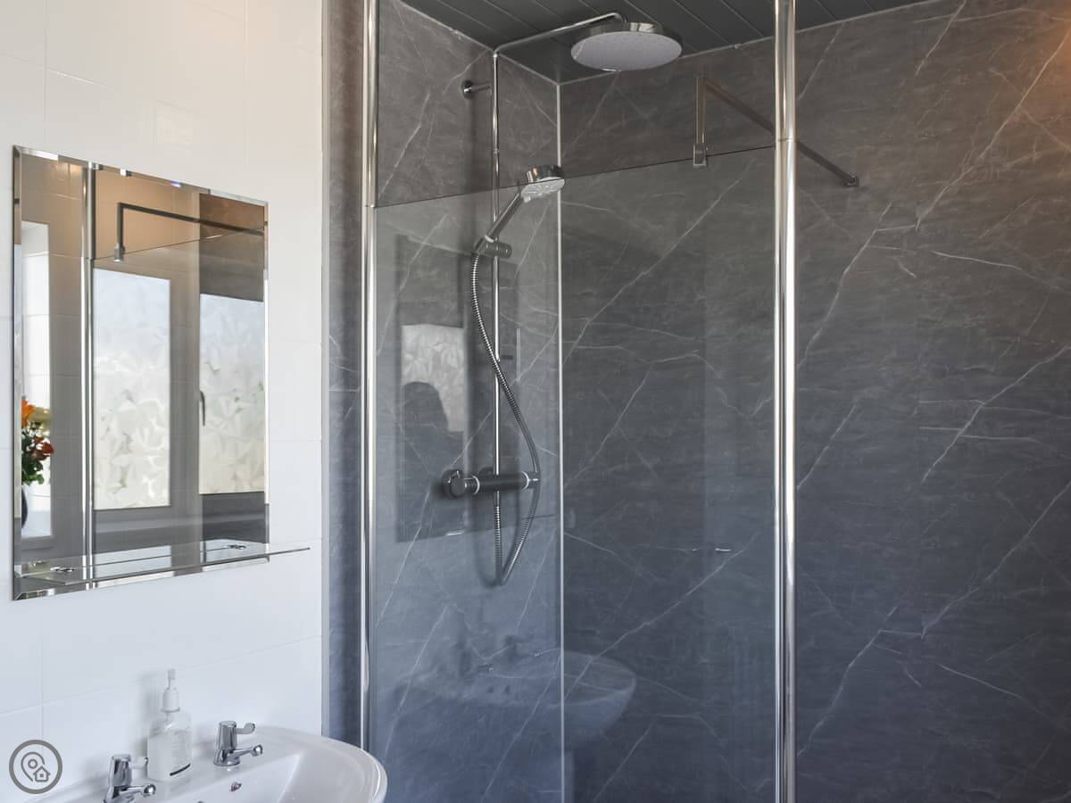 It sleeps five. Three bedrooms: one super king, one king, and one single. One bathroom with a shower. It's a 4 Star place, so it's well looked after and comfortable. Everything you need is there.