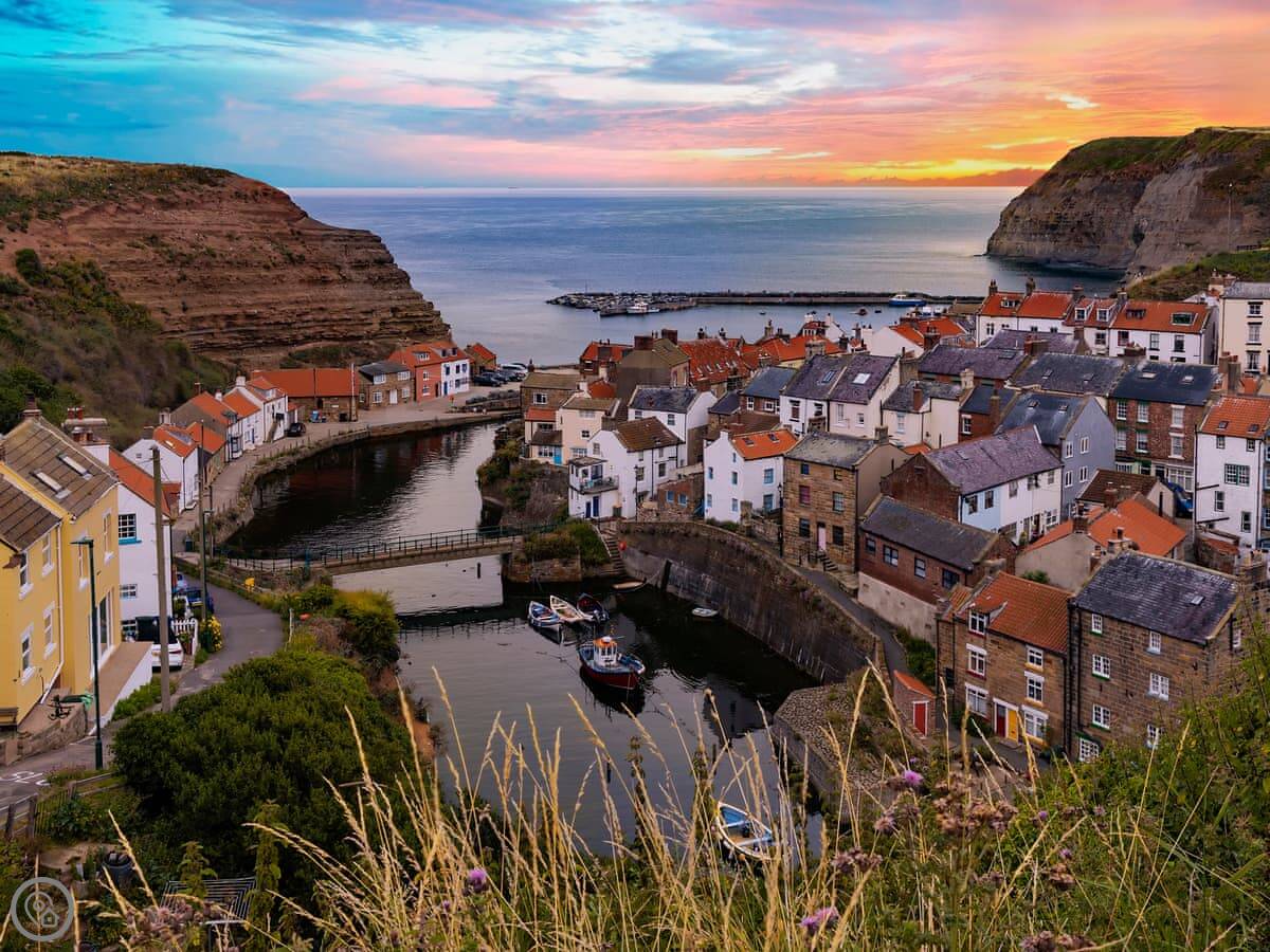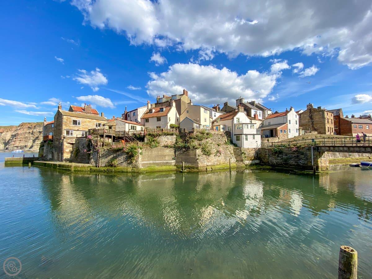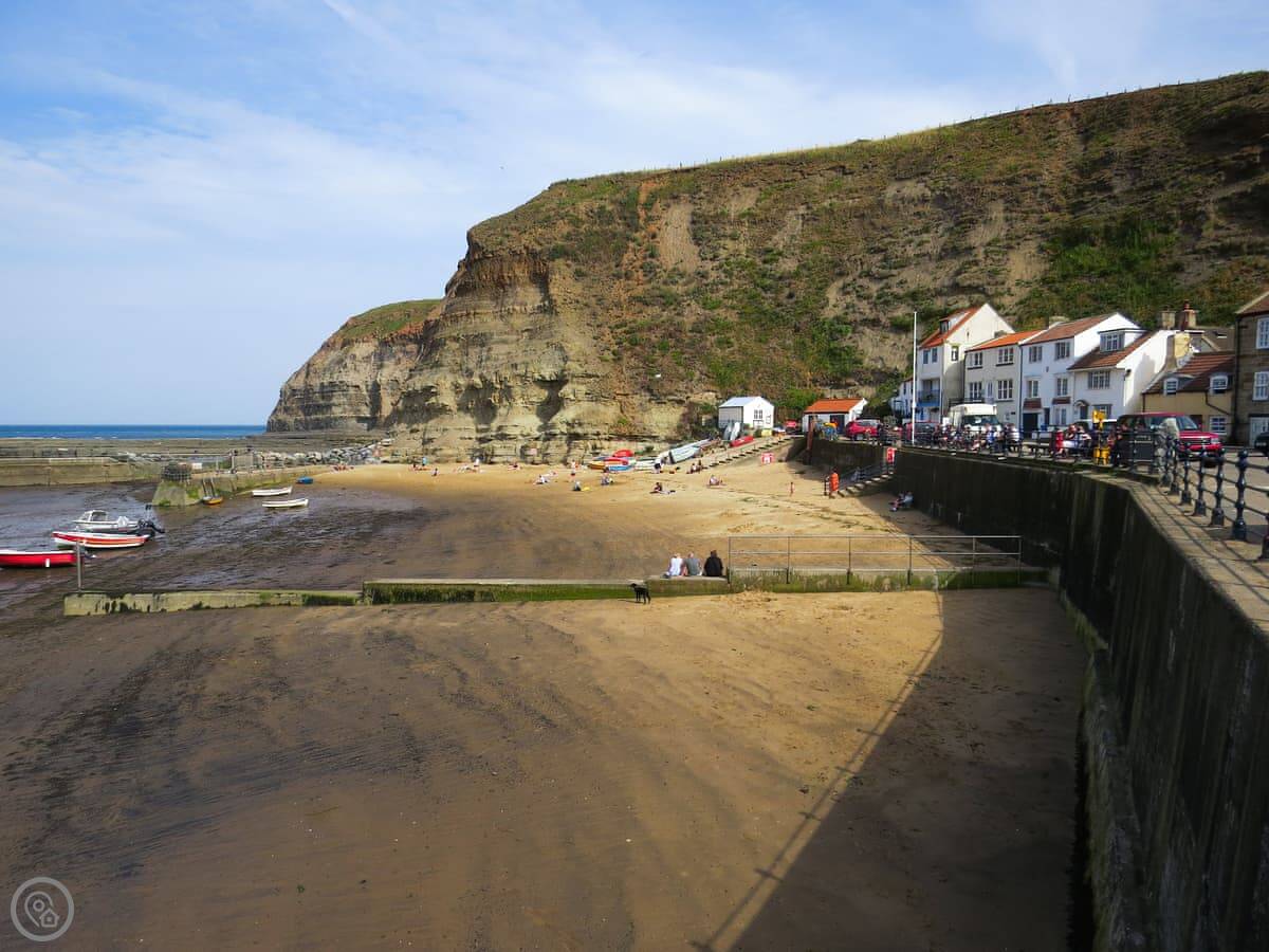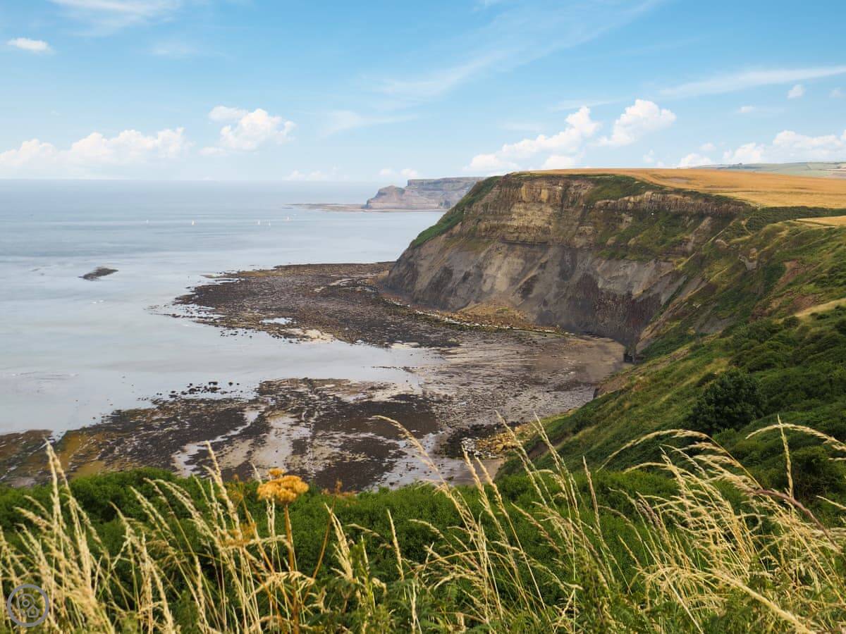 From here, you're on the Cleveland Way for walking. Runswick Bay is about ten minutes by car, Robin Hood's Bay is about twenty, and Whitby is about twenty-five. You can get boat trips from Whitby harbour. Saltburn and its surf school is about twenty minutes in the other direction.