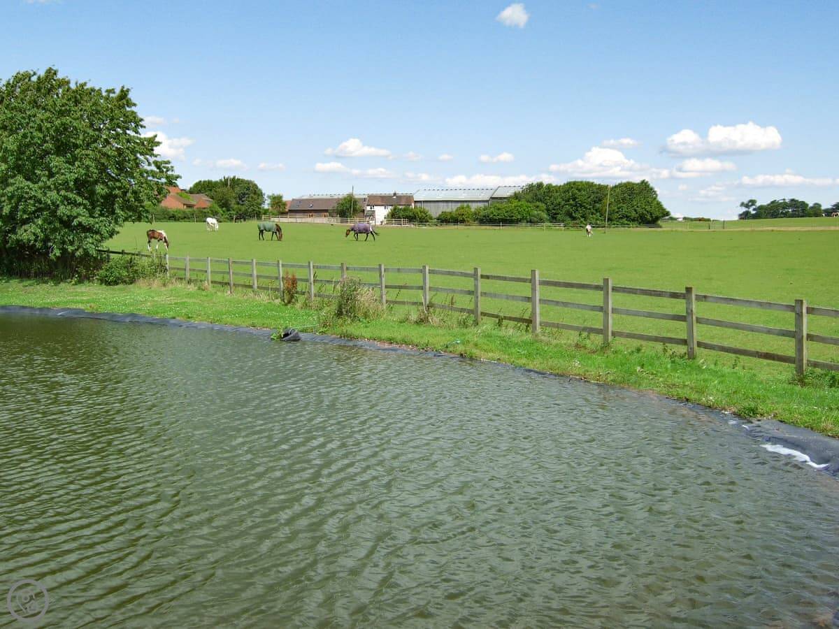 It’s a working farm, so you'll see horses and cattle about. The farm lane is quiet for walks. For a longer walk, the Coventry Canal towpath is about a mile away. You can fish on one of the farm ponds if you want to.