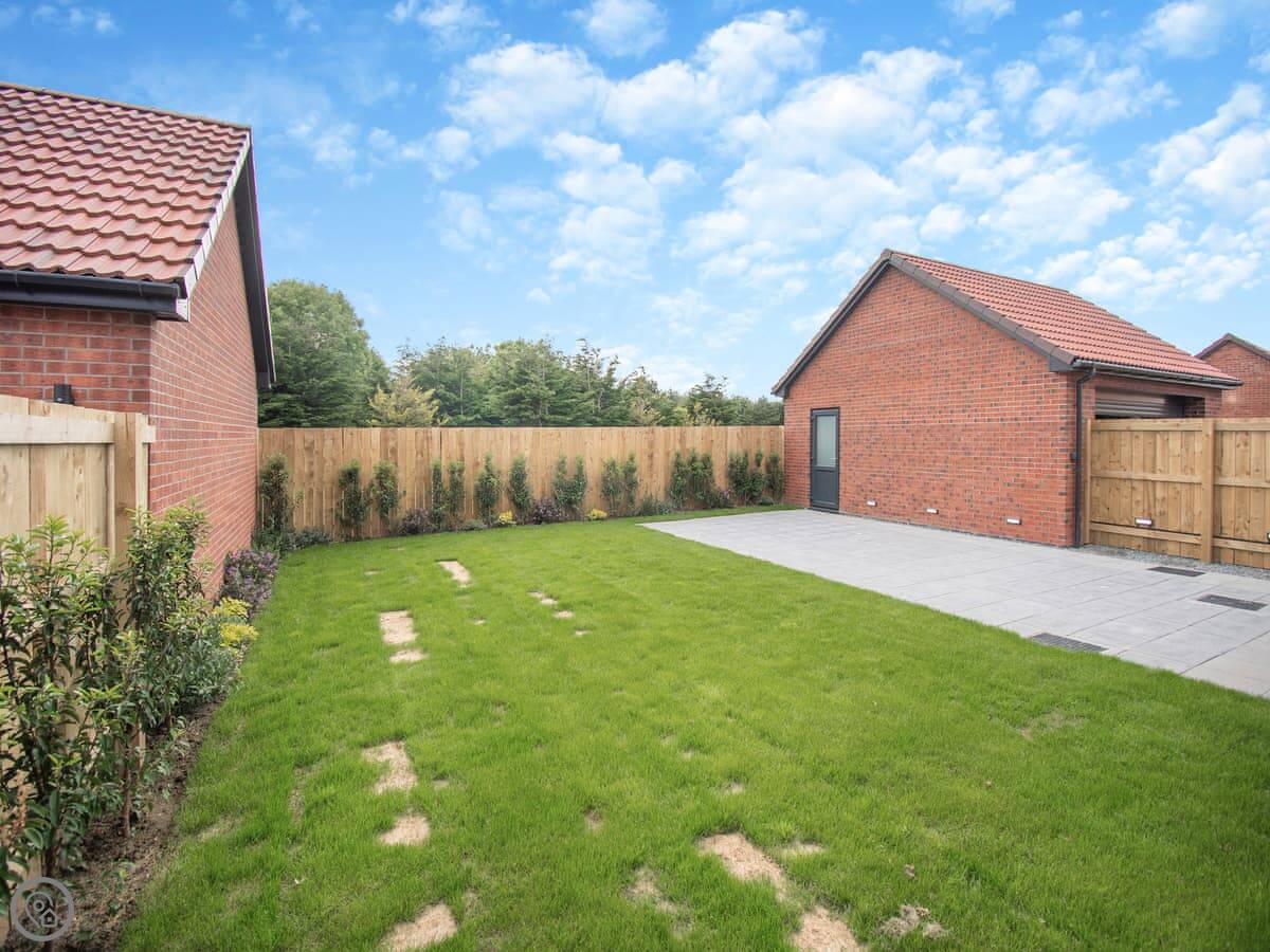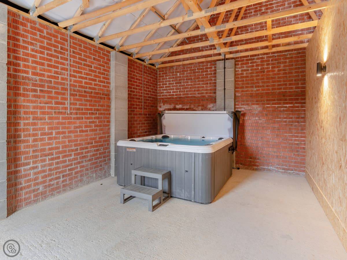 The garden is enclosed, which is good if you have dogs or children. There's a patio and a lawn. The hot tub is in a sort of garden room. It seats six.