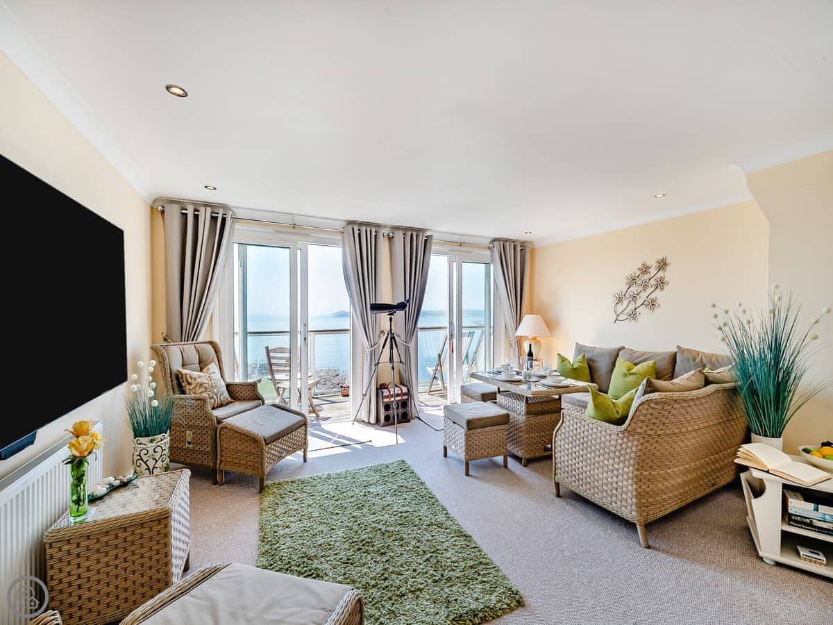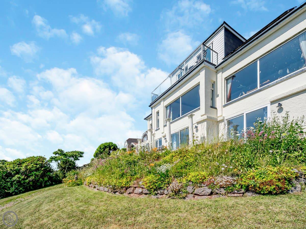 Crownhill Bay Penthouse is in Heybrook Bay, near Plymouth. It's a modern, detached penthouse on a quiet park. The main thing is the view. You look straight out over Wembury Bay.