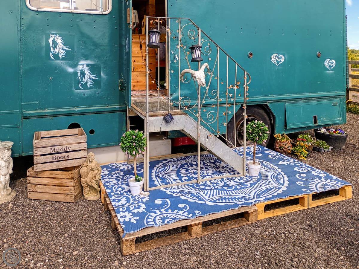 The Box is on our farm in Worlds End, near Denmead. It's a converted horse box. So it's a single, long space with everything in it. You've got the bed at one end and the living area at the other.
