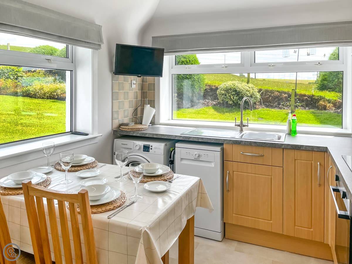 Inside, there's a wood burner in the sitting room, a dishwasher and washing machine in the kitchen, and WiFi is included. Bedding and towels are provided. There's parking on the drive.