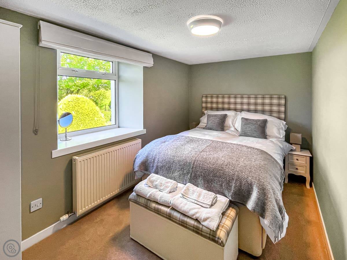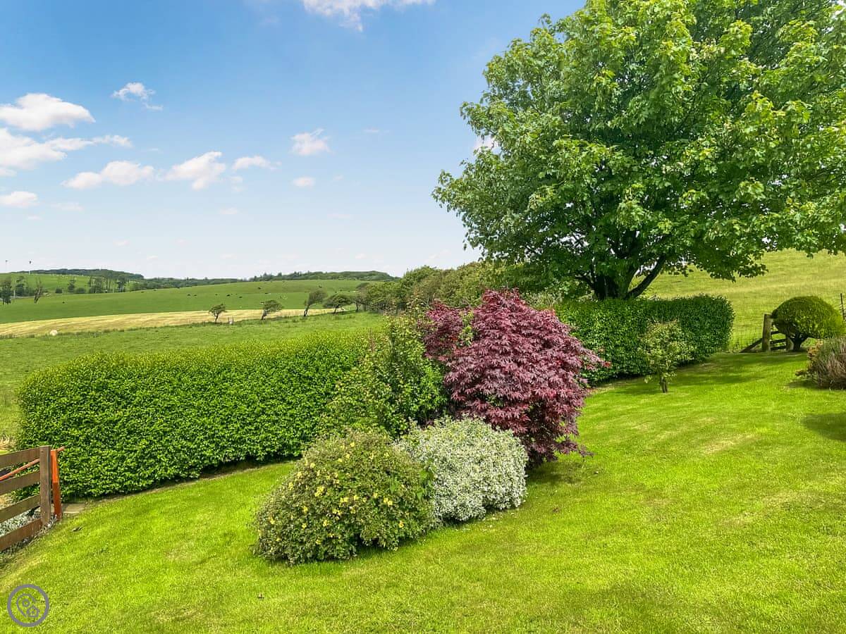The garden is sizeable and enclosed. You can bring one dog.