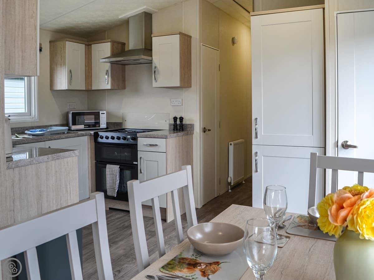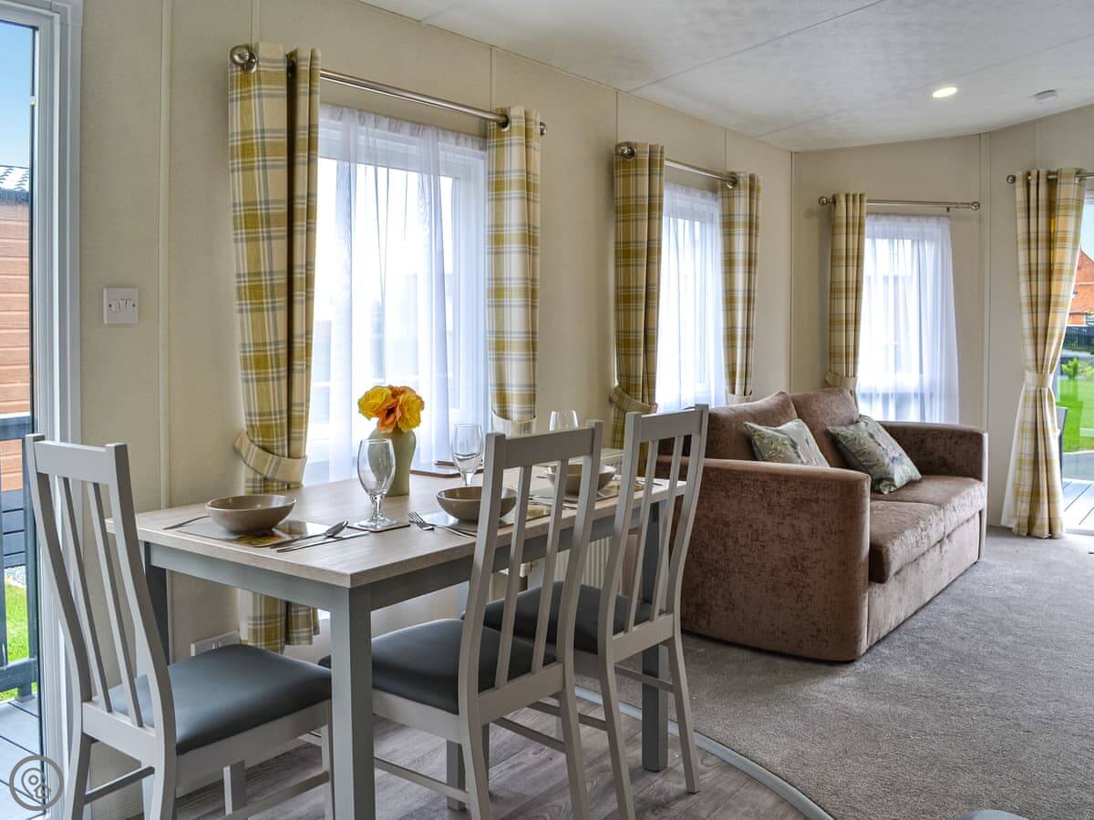 Lodge 9 is on a small estate on the edge of Carnaby. It's a modern, detached single-storey lodge, so no stairs to worry about. The garden is fenced, which is handy if you've got dogs.