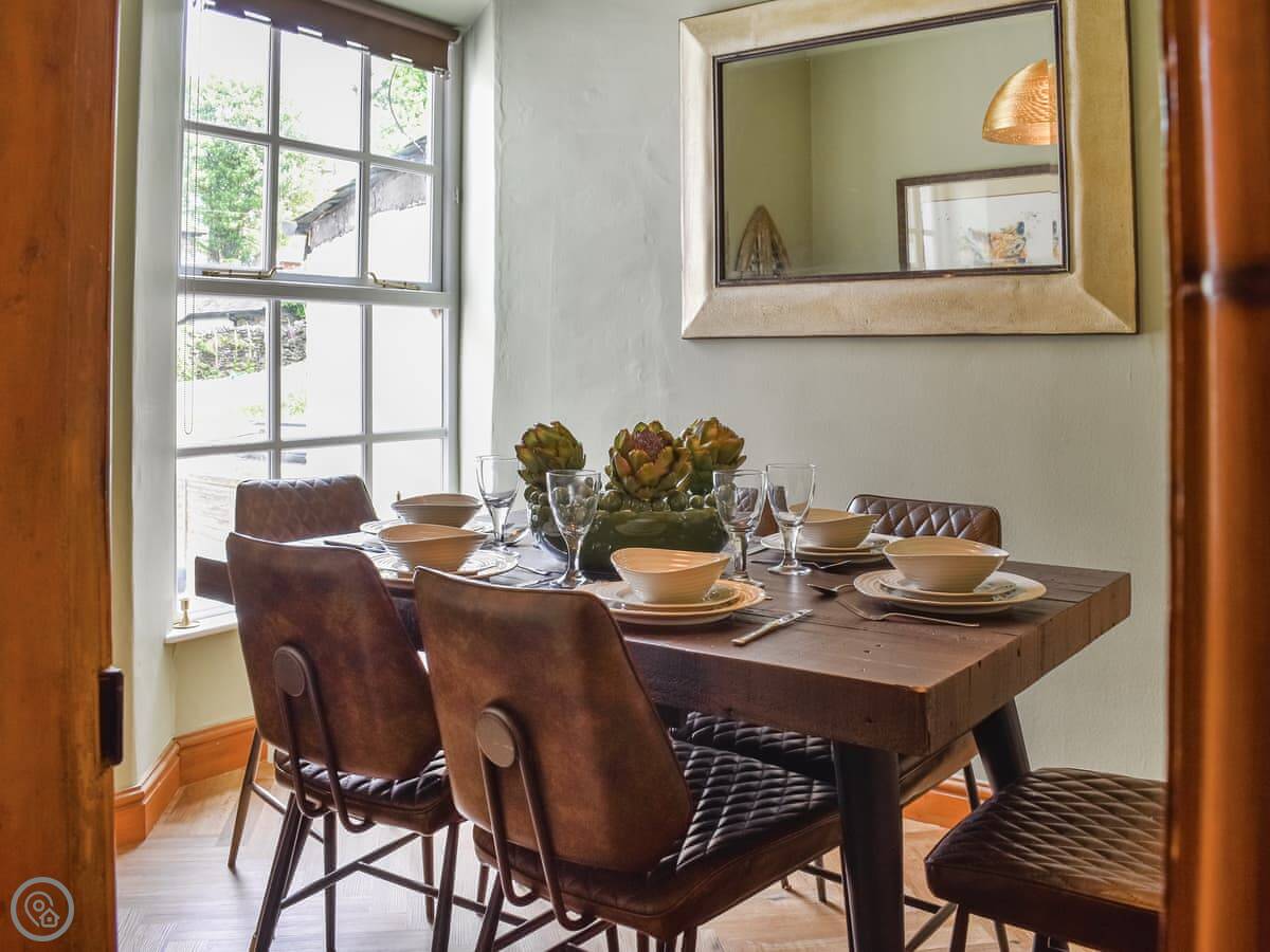 Downstairs has a lounge with a wood burner, a separate dining room, and a decent kitchen with a dishwasher. It's got a 4 Star rating. The wifi is included, as is all the bedding and towels. Parking for one car is on site.