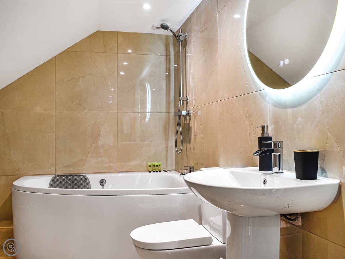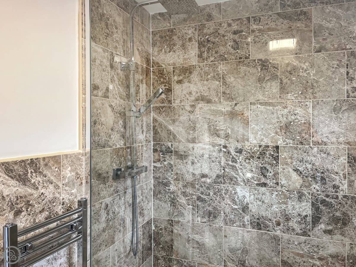 It sleeps six in three bedrooms. There are two bathrooms, one of which is a shower room downstairs. It’s a four star property, so it’s comfortable and well-equipped.