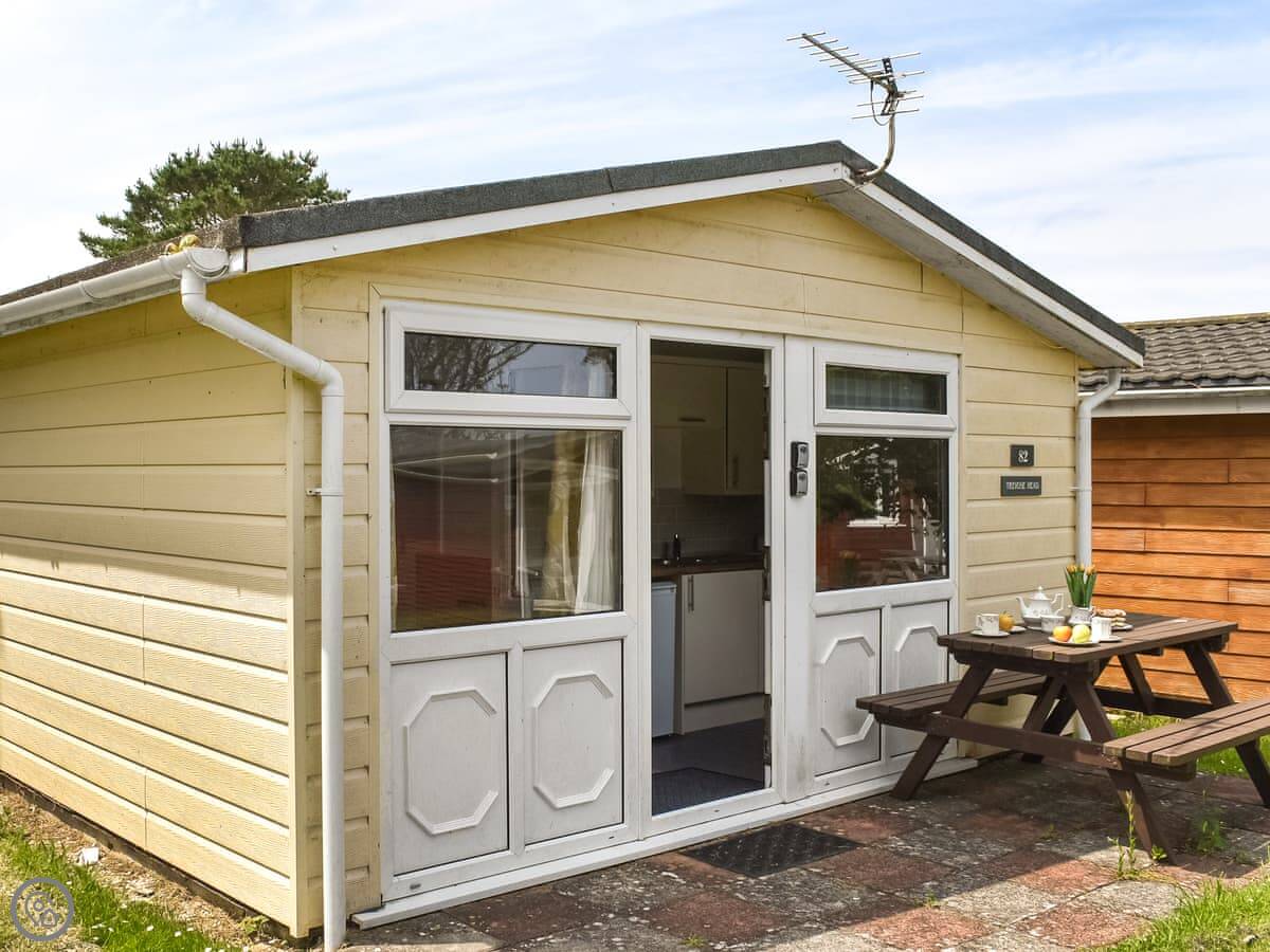 Outside the front there's a picnic bench. You get a parking space on the site.