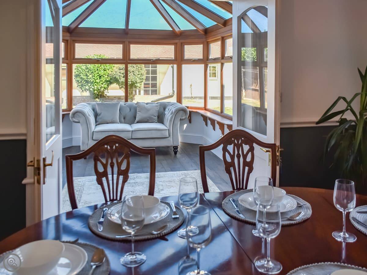 It sleeps twelve, in five bedrooms. There are three bathrooms. It's got a 4 Star rating, so it's comfortable and well-equipped. There's a separate annexe in the garden, which is all on one level. It's handy if some of your group want a bit of quiet, or if anyone struggles with stairs.
