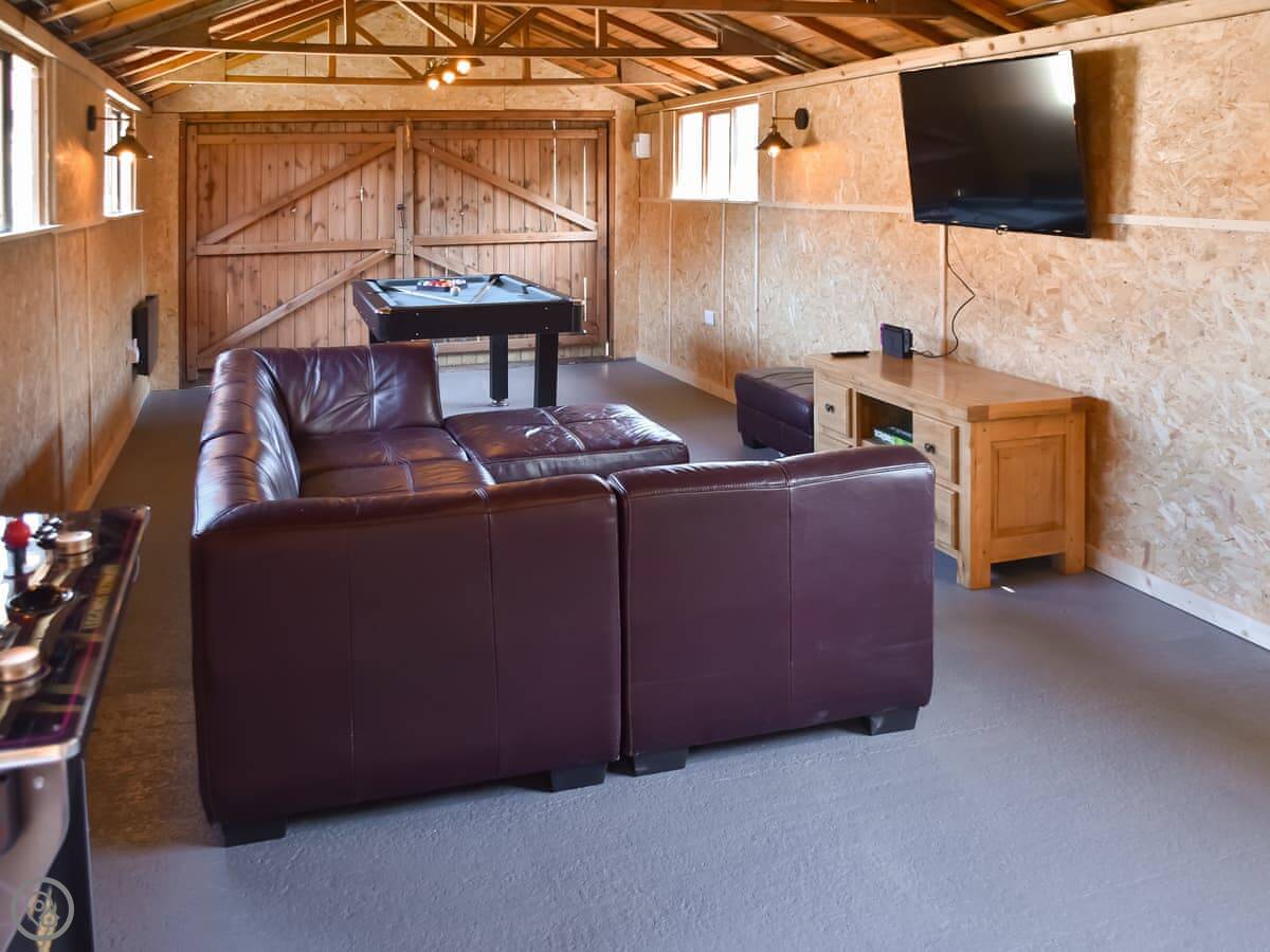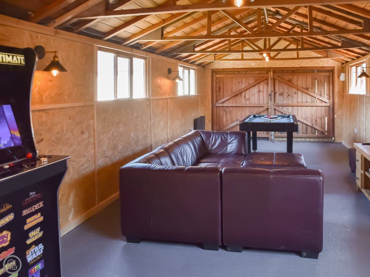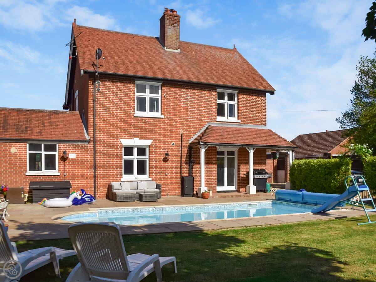 The main thing outside is the pool. It's heated, and it's open in the warmer months. There's a seating area next to it. There's also a games room in the garden, which is useful if the weather turns.