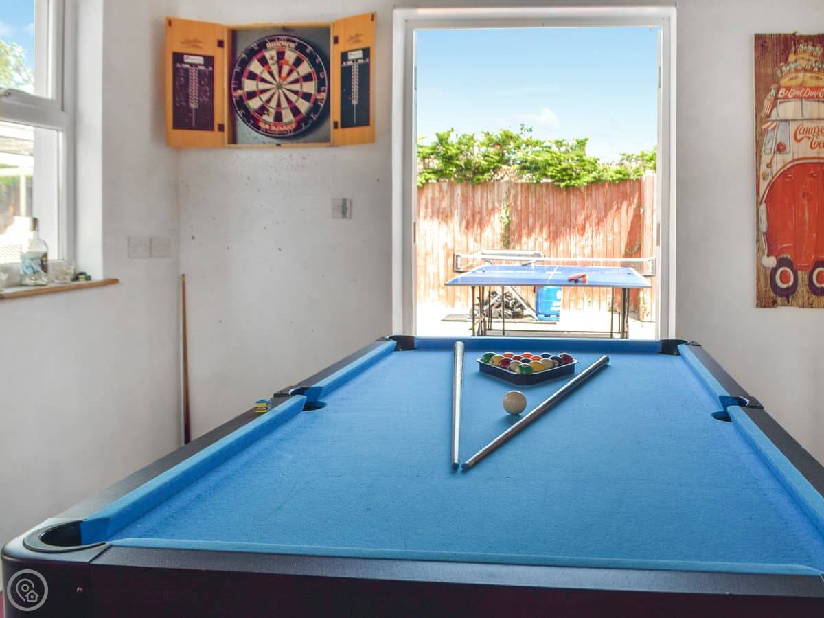 It's a 3 Star place, sleeps eight. Four bedrooms, two bathrooms, so it's fairly spacious. It's not fancy but it's clean and solid. There’s a games room with a pool table and table tennis.