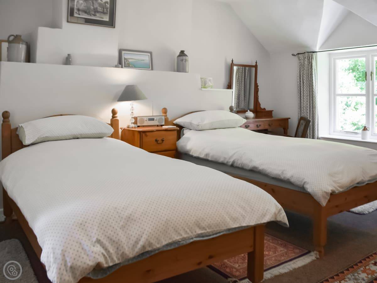Wood Cottage is on the Stackpole Estate in south Pembrokeshire. It's a three-bedroom place, sleeps six. Three of us can get a bit territorial about the sofas but there's space.