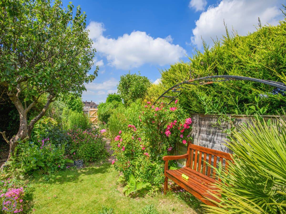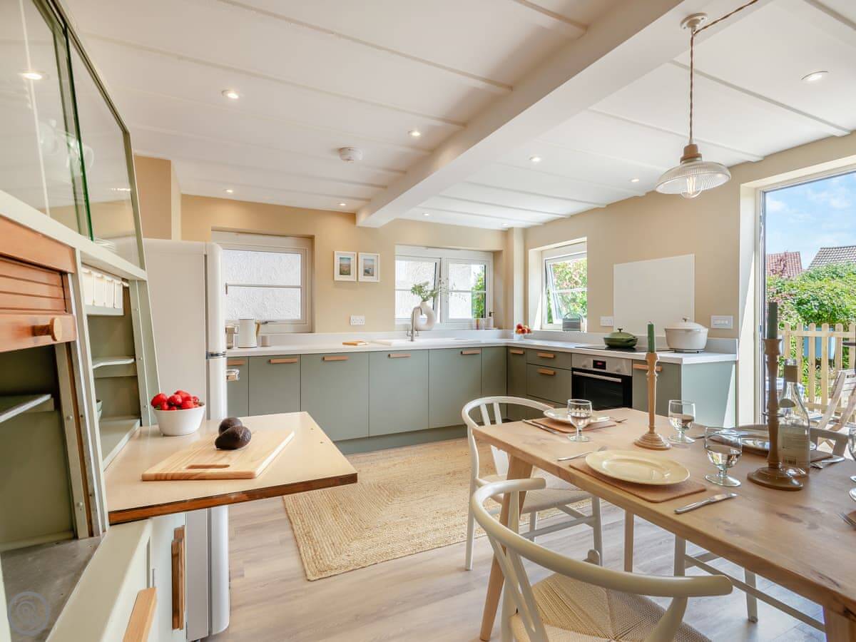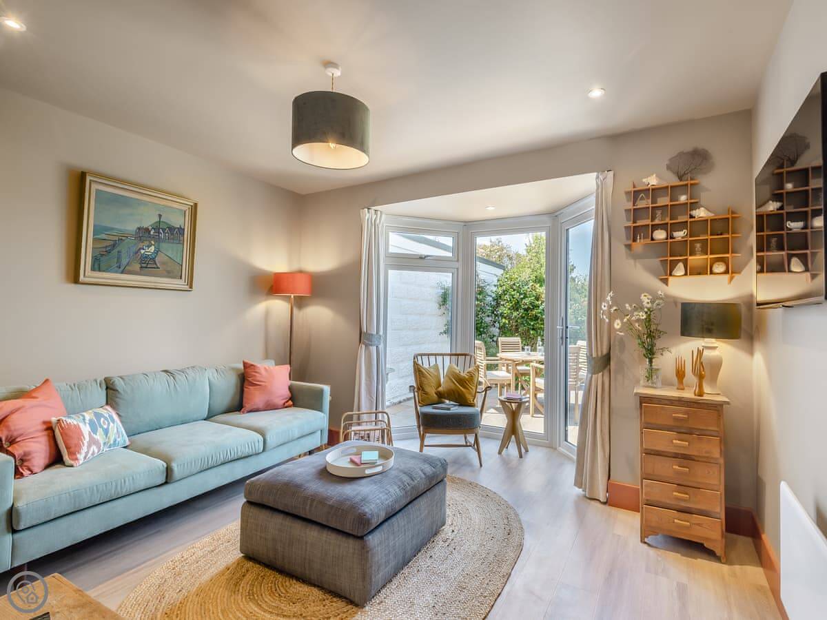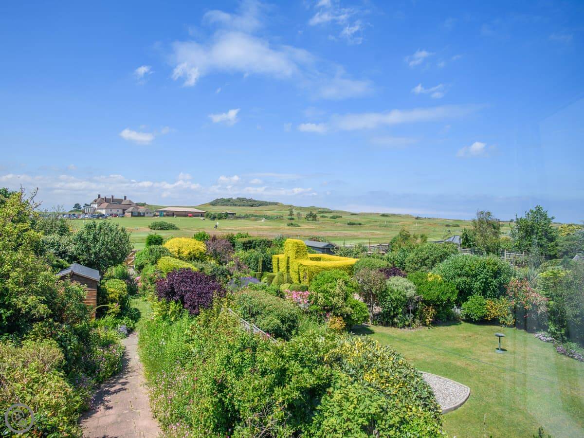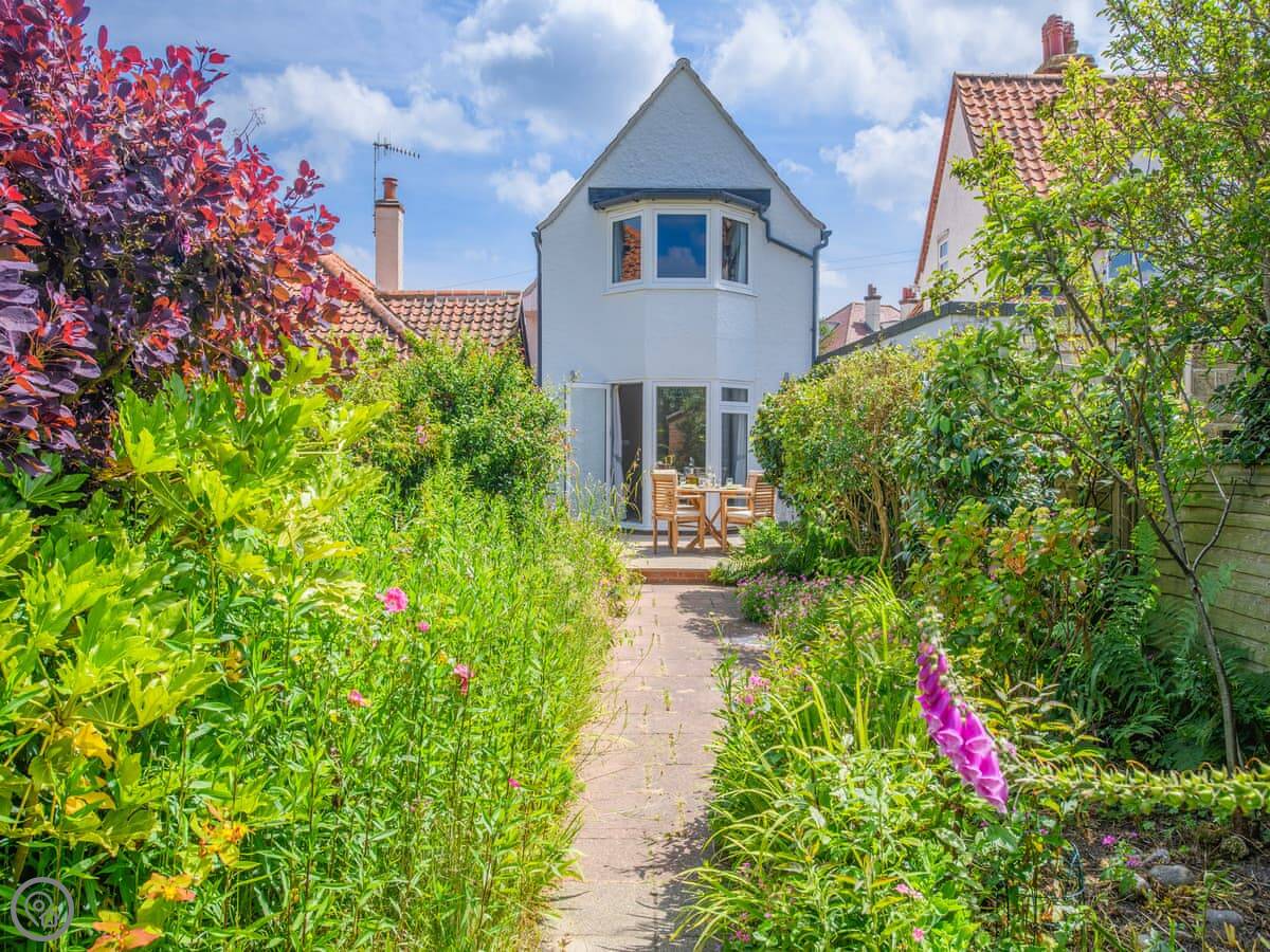 The kitchen leads out to a front patio, which gets the sun in the morning. The living room has doors to a bigger, enclosed garden at the back. That gets the afternoon and evening sun. There's a private gate from that garden directly onto the Norfolk Coastal Path and the golf course.