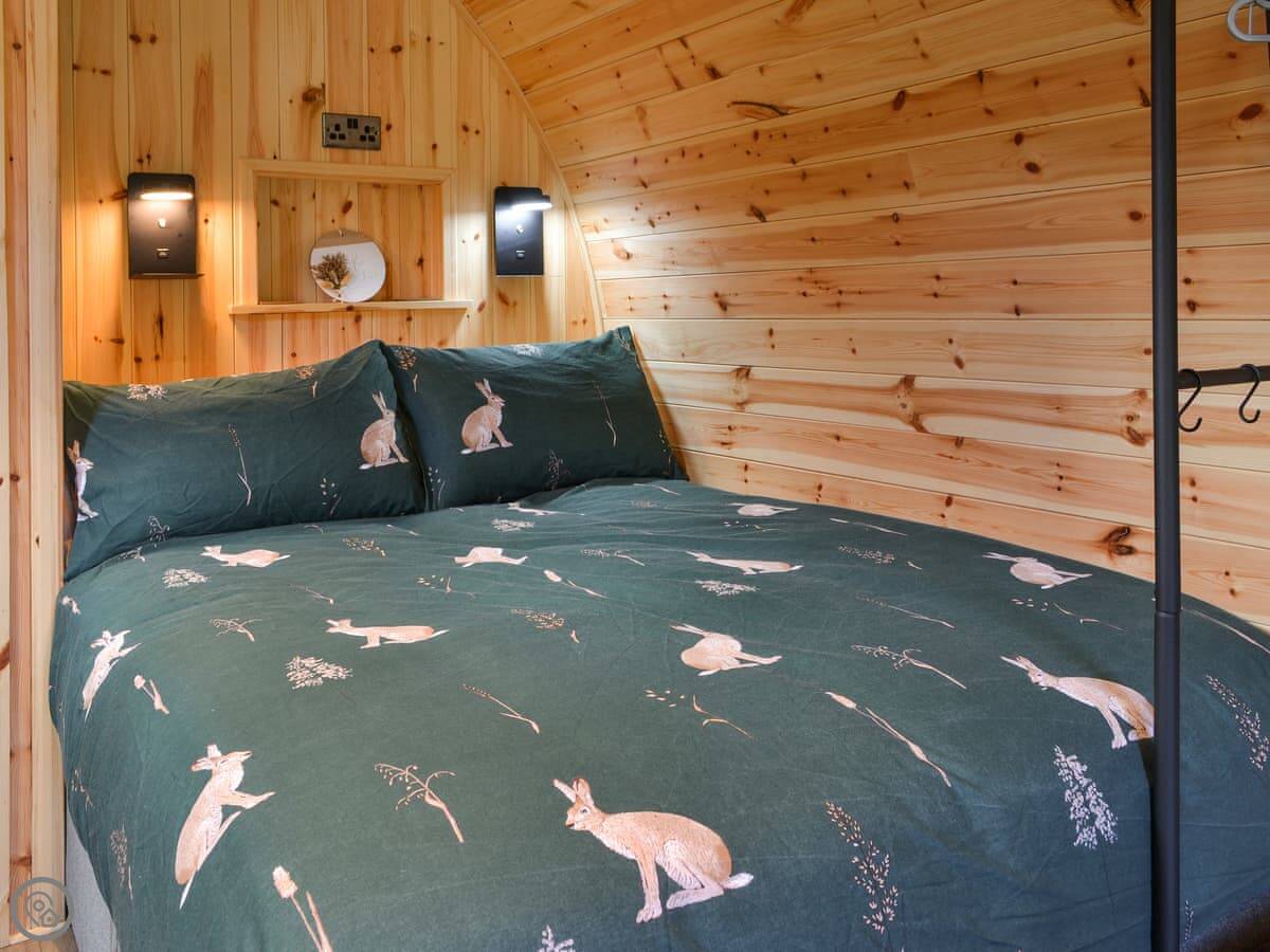 Facilities: there's parking right by the pod, bedding and towels are included, there's WiFi and a TV. It has an electric BBQ. There's a washing machine in a shared utility room on the farm.
