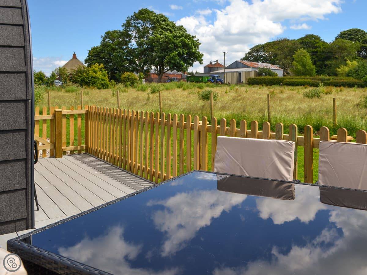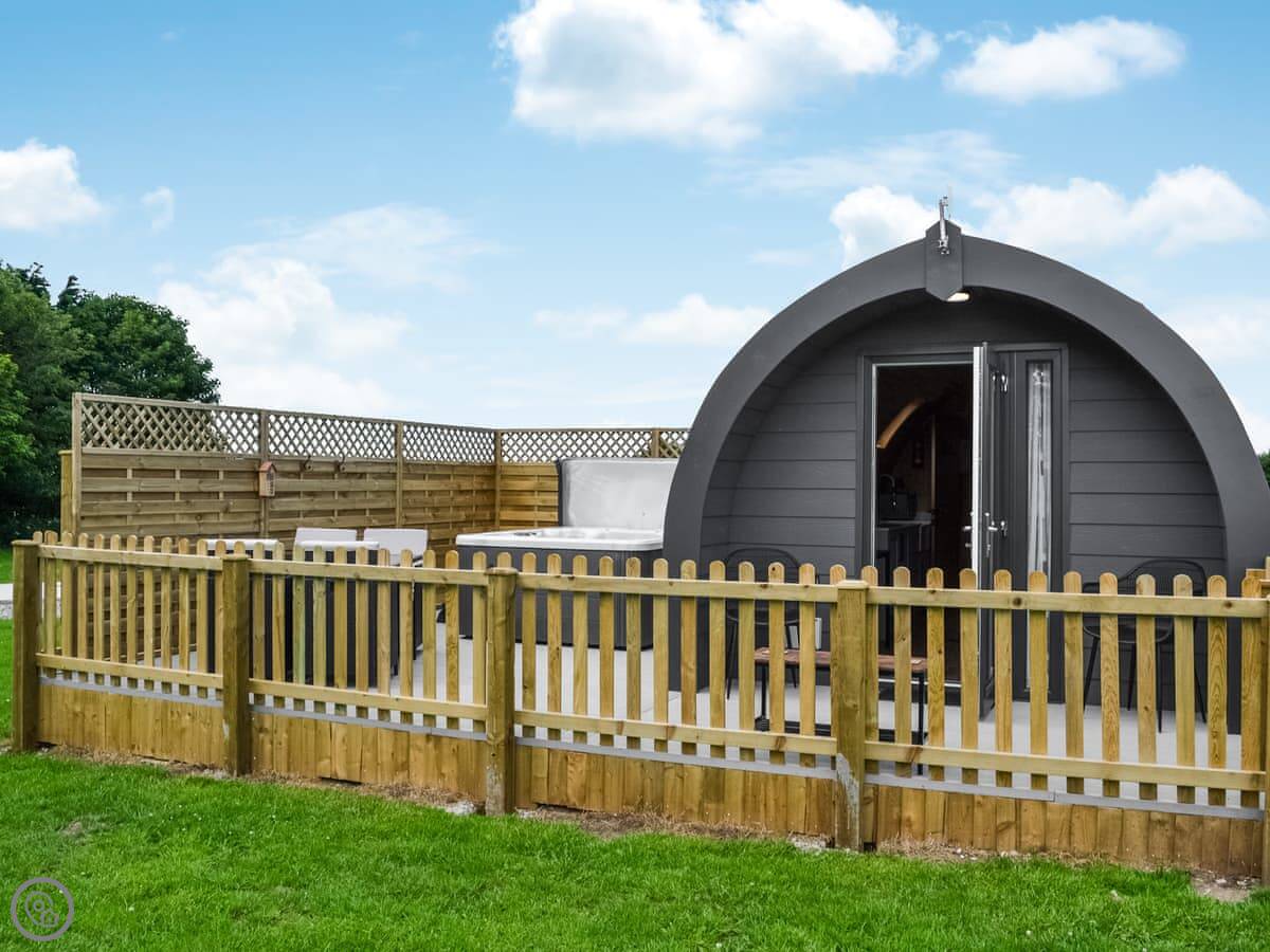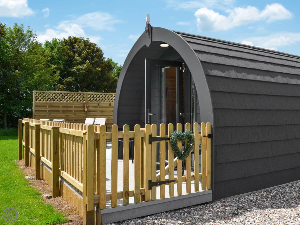 This is Hawthorn. It's one of three pods at Graffitoe Farm, near Reighton. It's detached and sits on its own bit of decking.