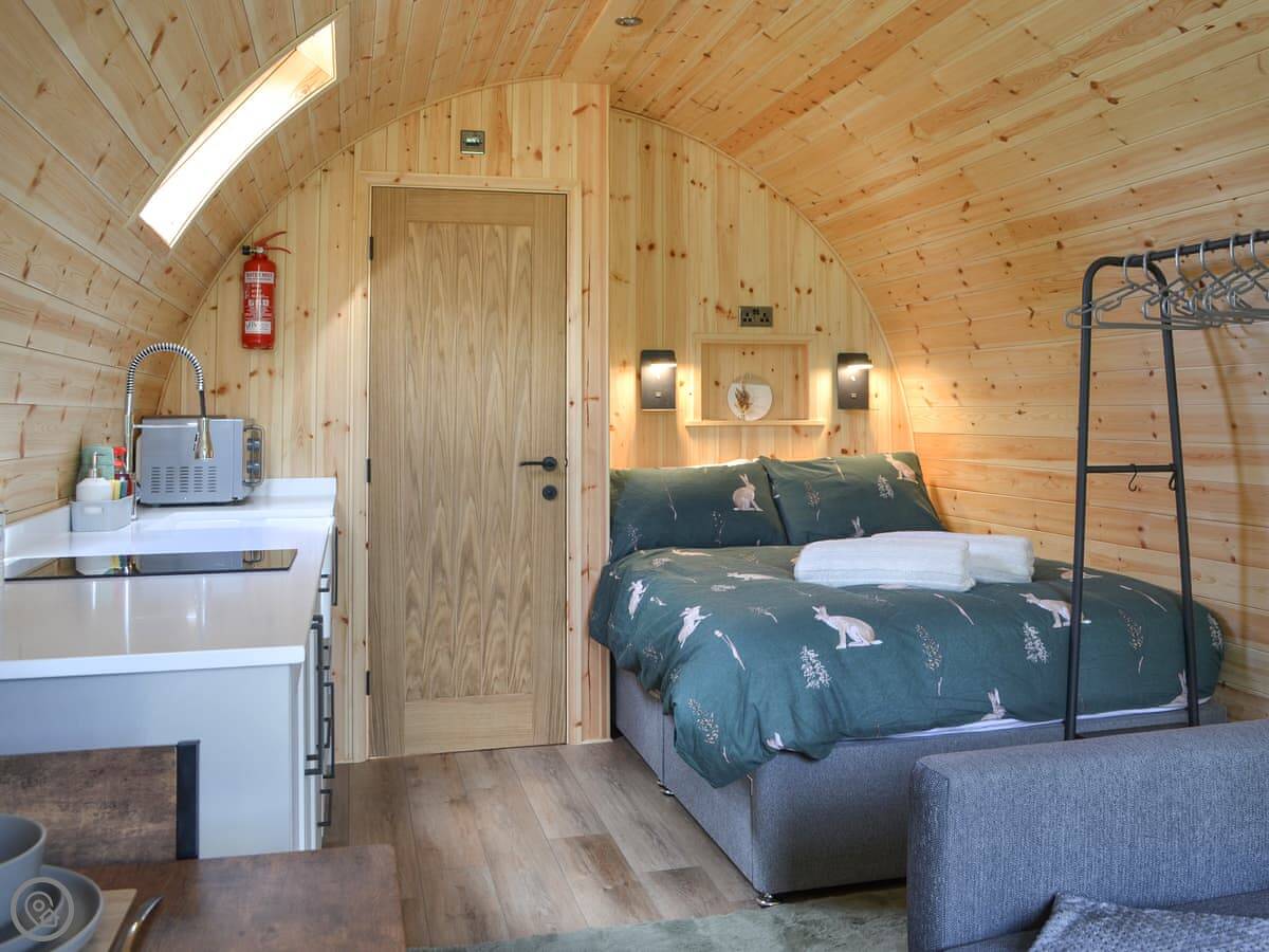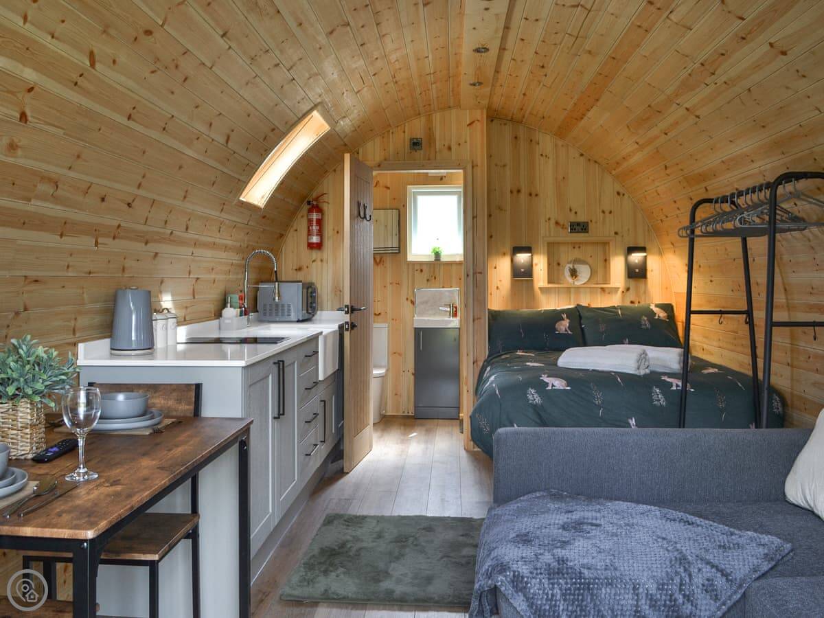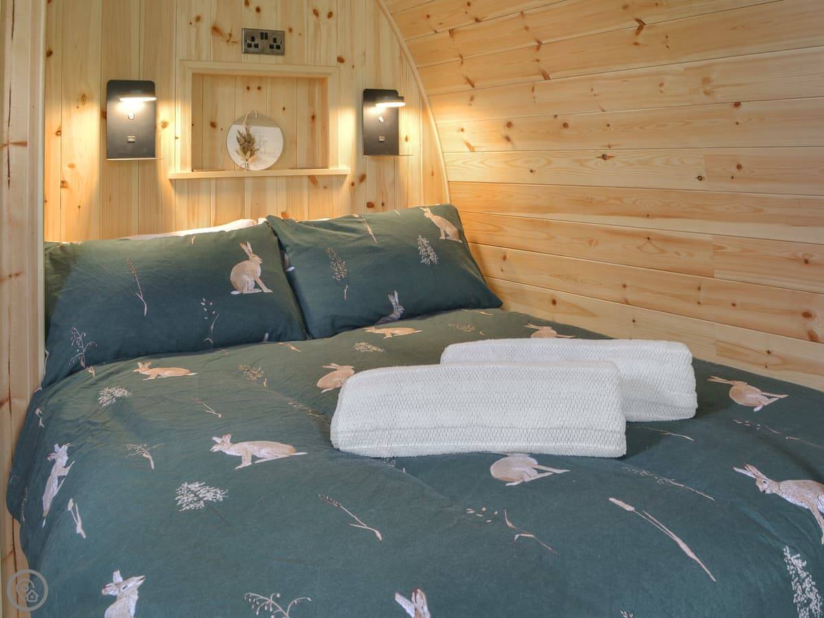 The property allows two dogs. Bedding and towels are included. There's parking right next to the pod. WiFi is included.