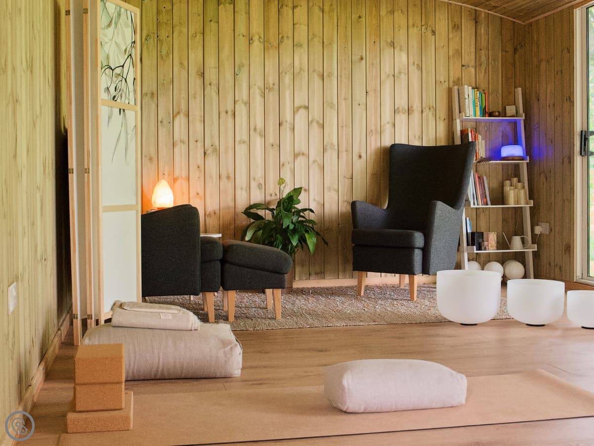 You’re welcome to wander around the wider farm grounds. There’s a pond. They can lend you picnic blankets and baskets. There’s also a yoga studio and therapy room on site if you want to book a treatment, but that’s separate and you arrange it directly with them.