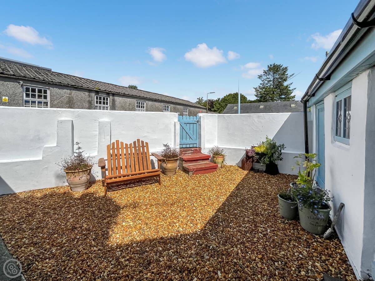 Outside there's a small enclosed courtyard with a table. There's also a big utility room you can use for storing bikes or walking gear. One well-behaved dog is welcome.