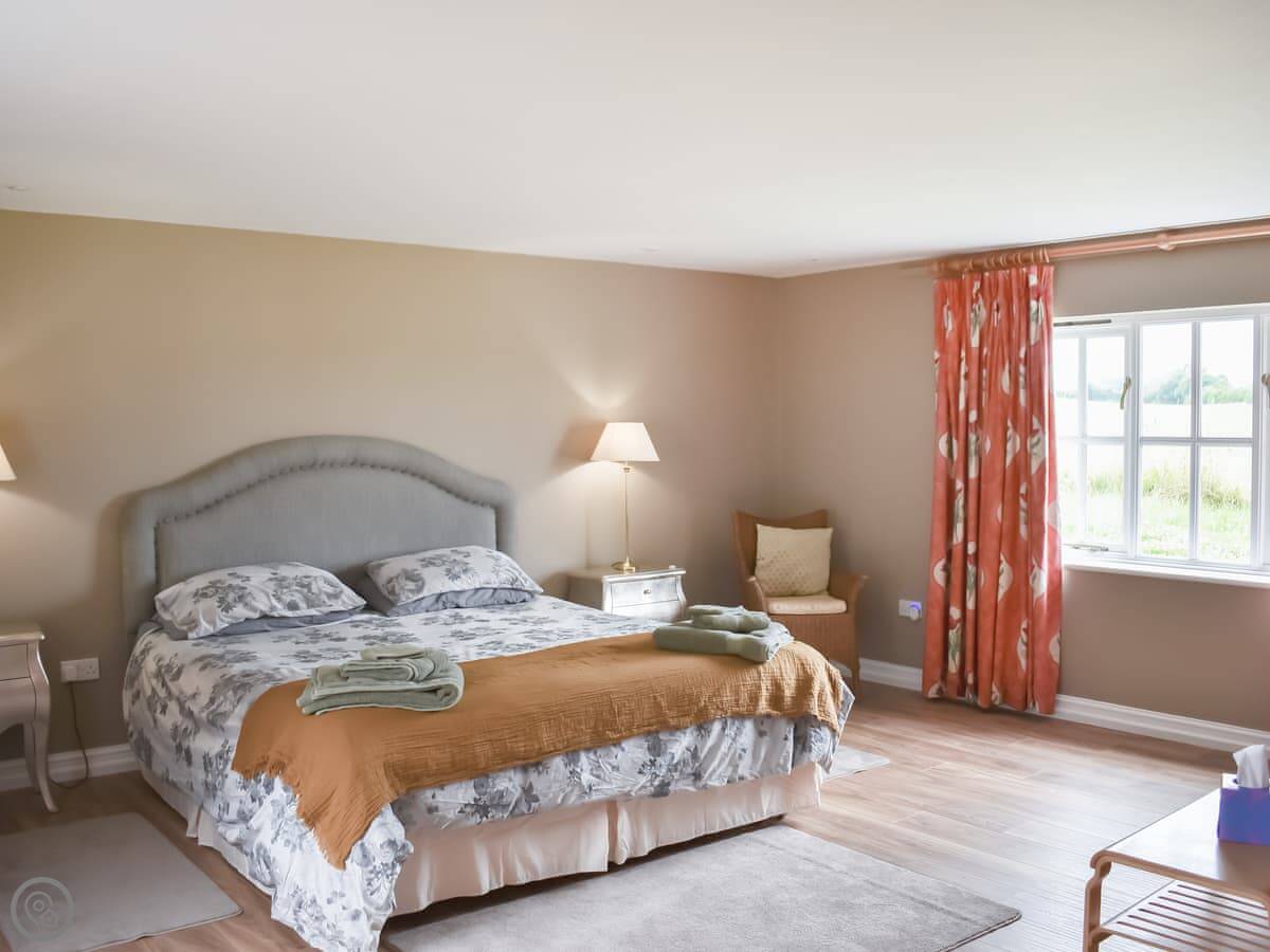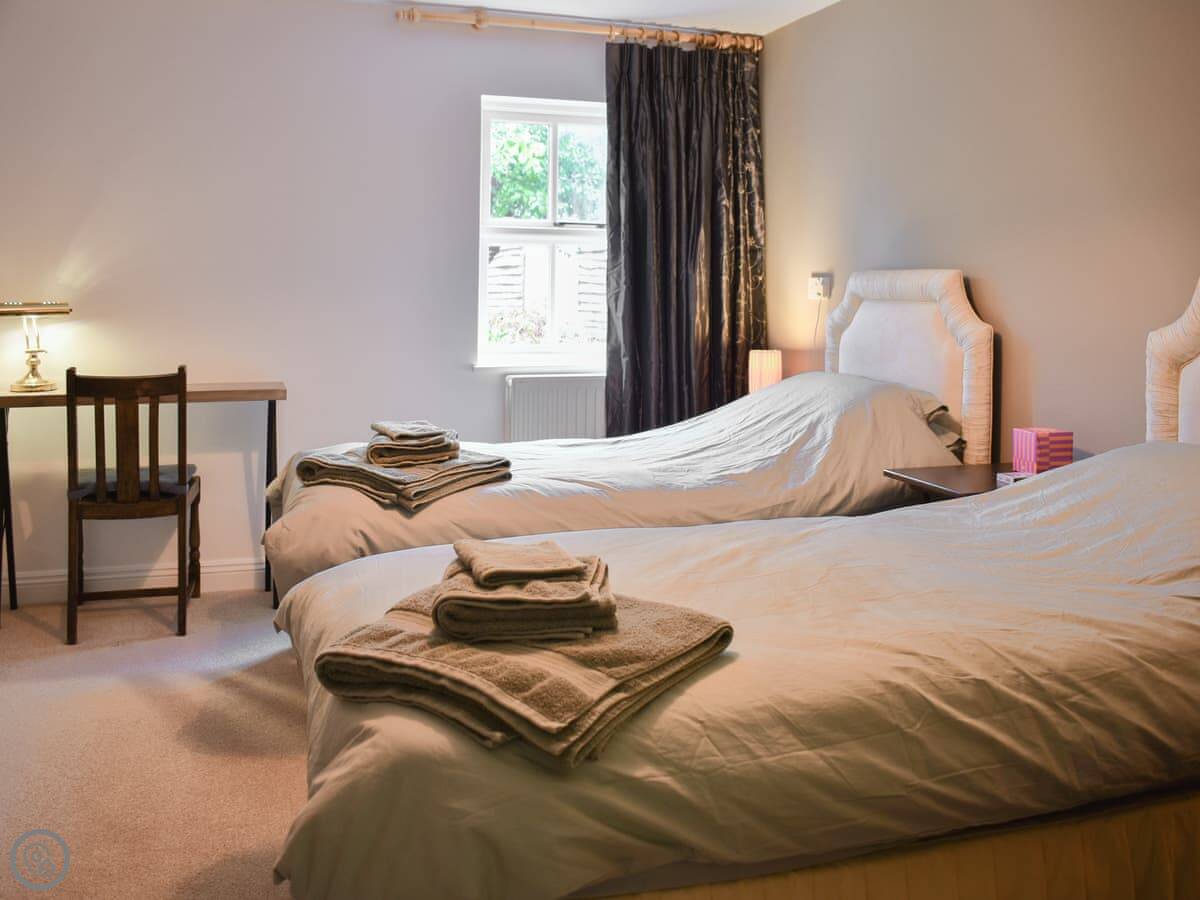 It sleeps four. There are two bedrooms. One has a super king bed and the other has twin beds. There’s one bathroom. The whole place is on the ground floor, so no stairs. It’s got a 4 Star rating.