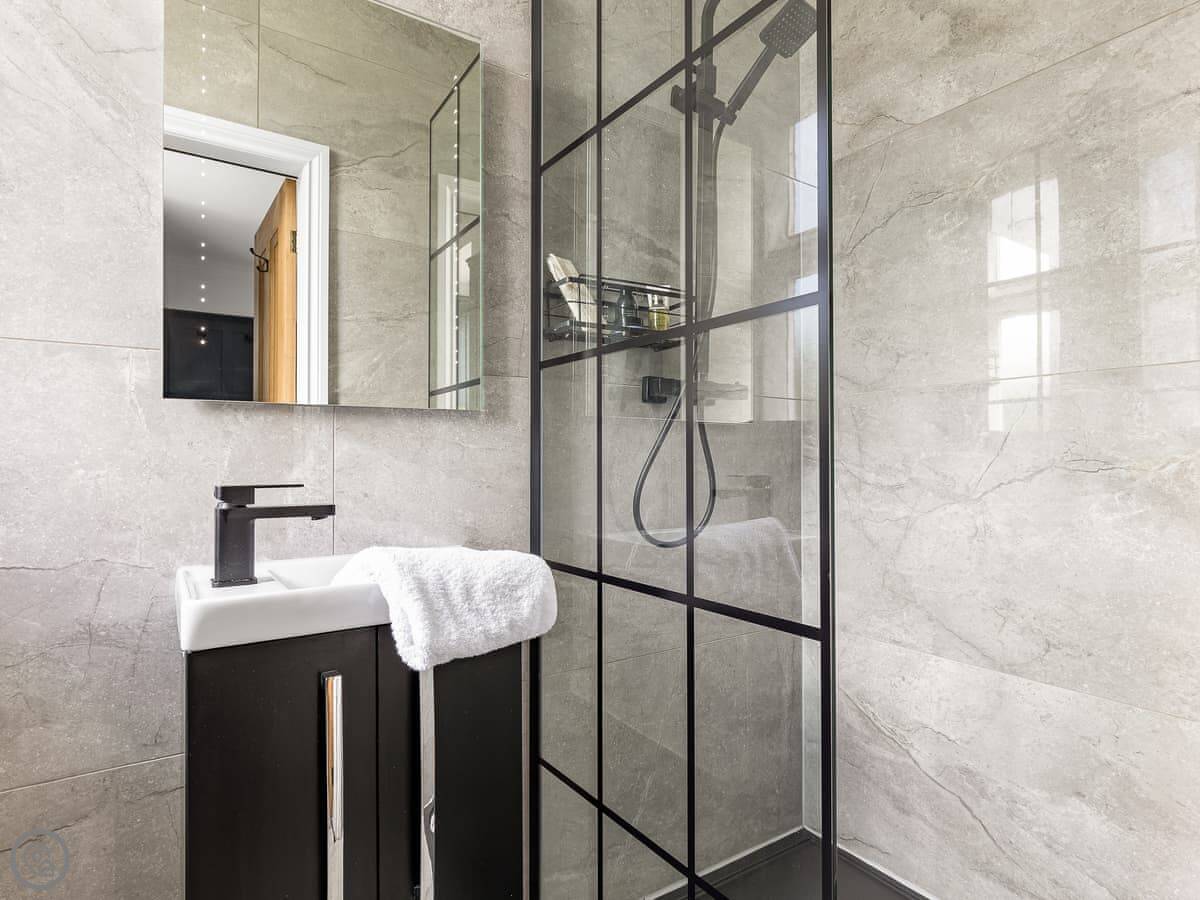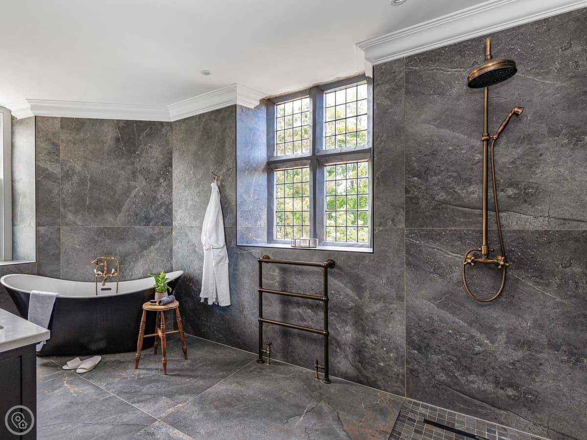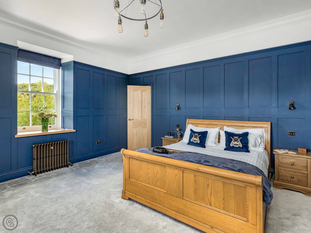 It sleeps ten people across four bedrooms. The good part is they all have their own bathroom. There's a double, a king, a super king, and a family room with a king and two singles.