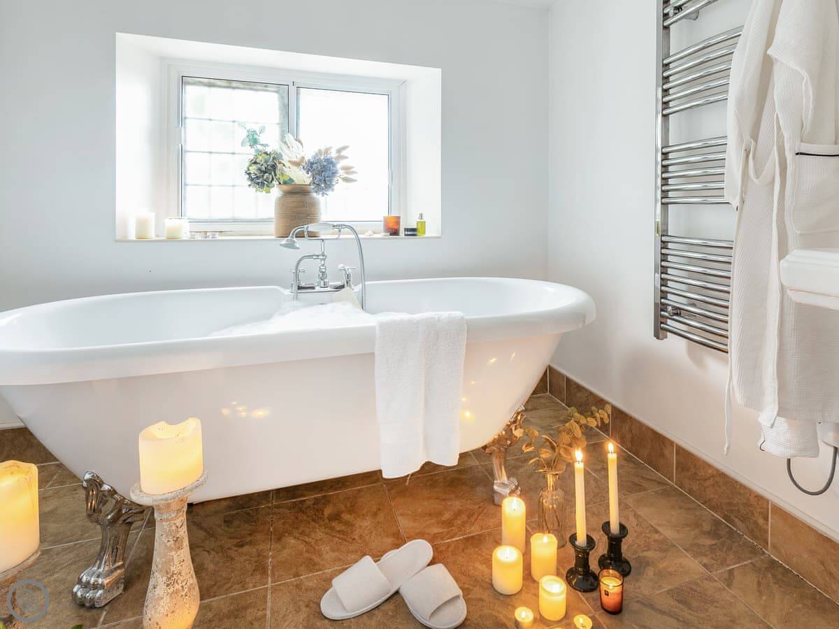 Facilities include the hot tub, washing machine, dishwasher, WiFi, and TVs. Bedding and towels are included. There's no swimming pool on site. No pets.