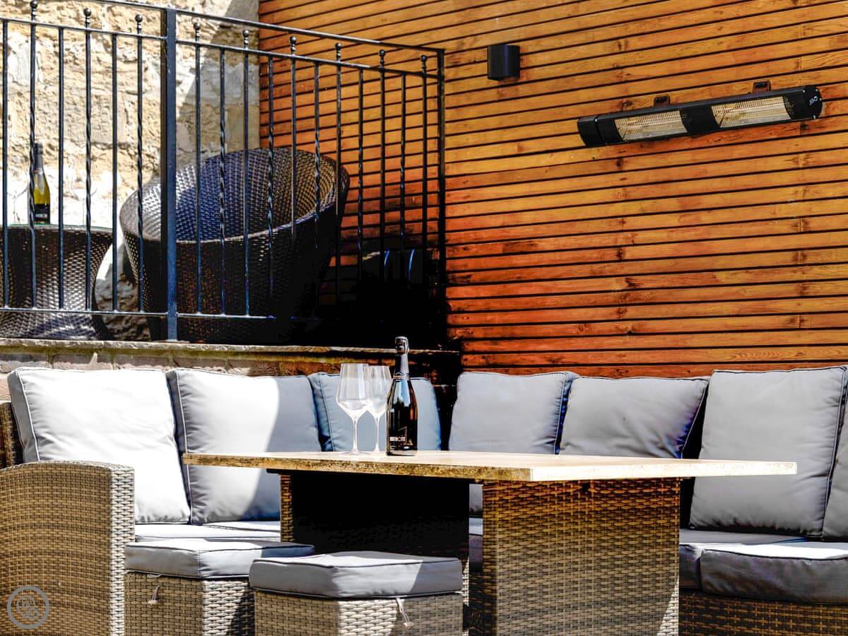 The garden is enclosed. It has a hot tub and outdoor seating. There's a utility room and plenty of on-site parking.