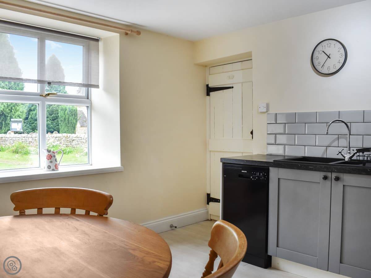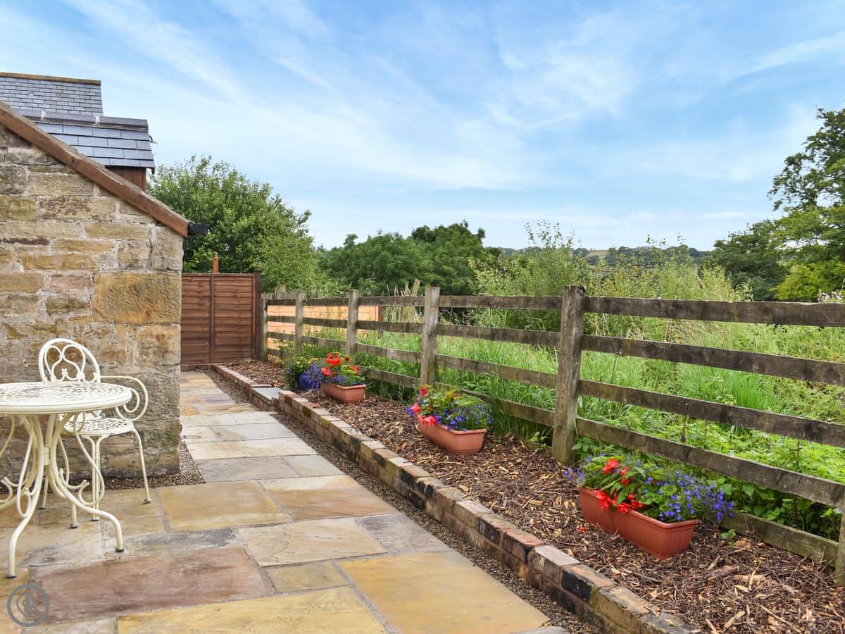 Out the back is a small, enclosed garden. It's patio with seating, and it looks out over fields. Good spot for a coffee in the morning.
