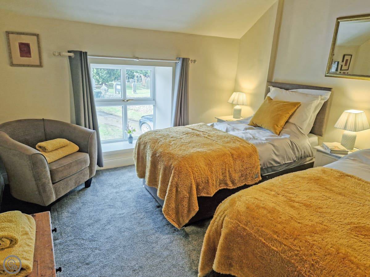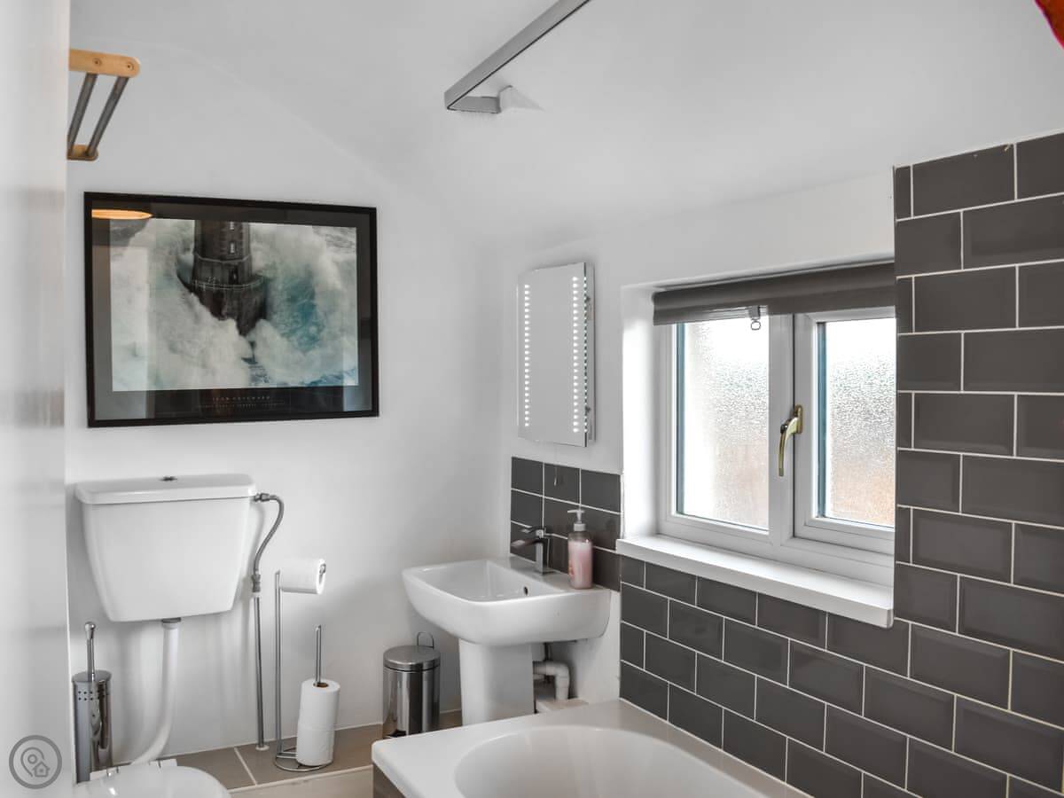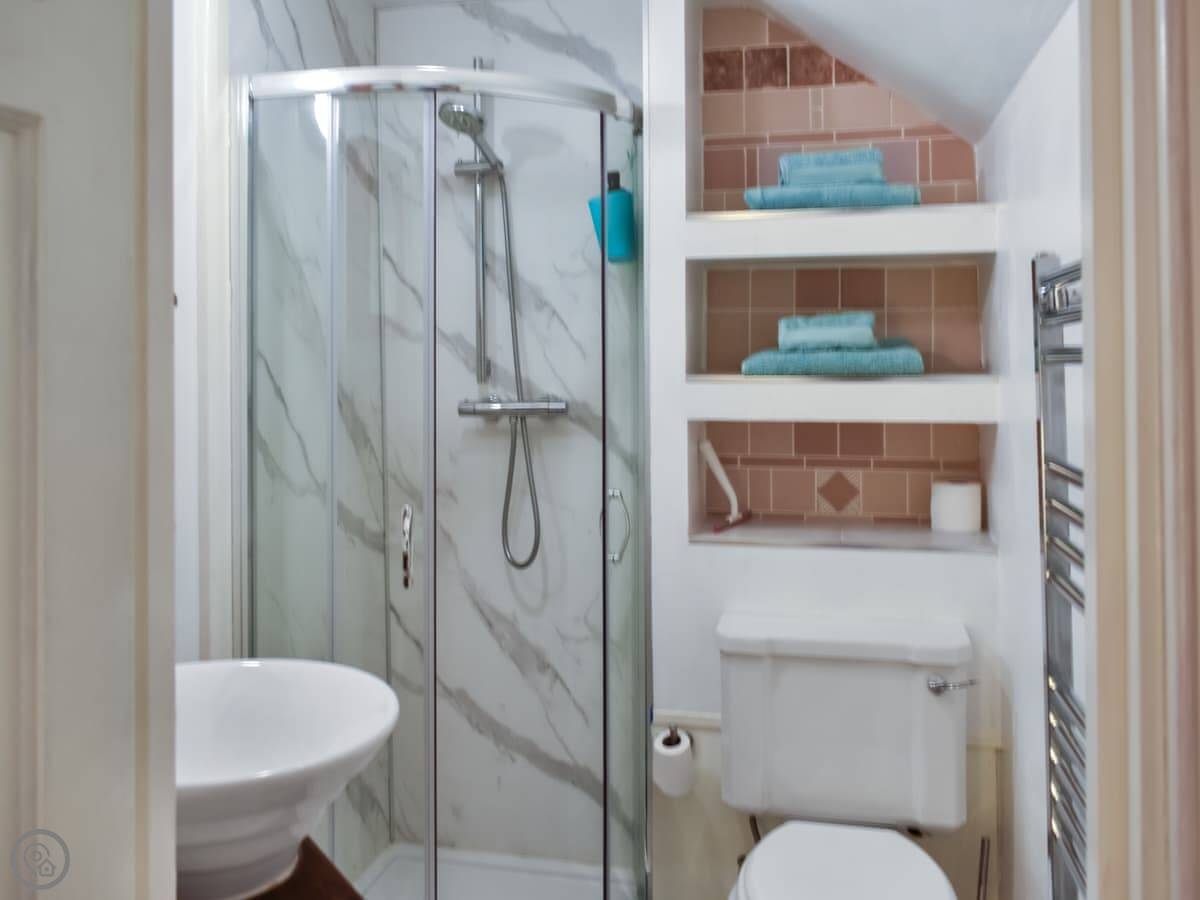 You've got two bathrooms, which is handy. The main bedroom has its own shower room. The second bedroom has twin beds. The stairs are original, so they're steep and a bit narrow.