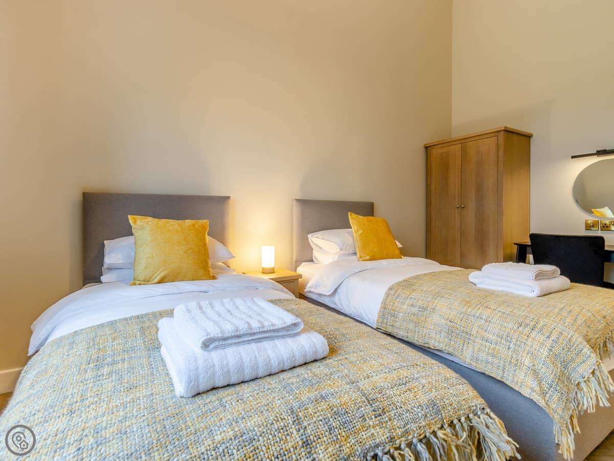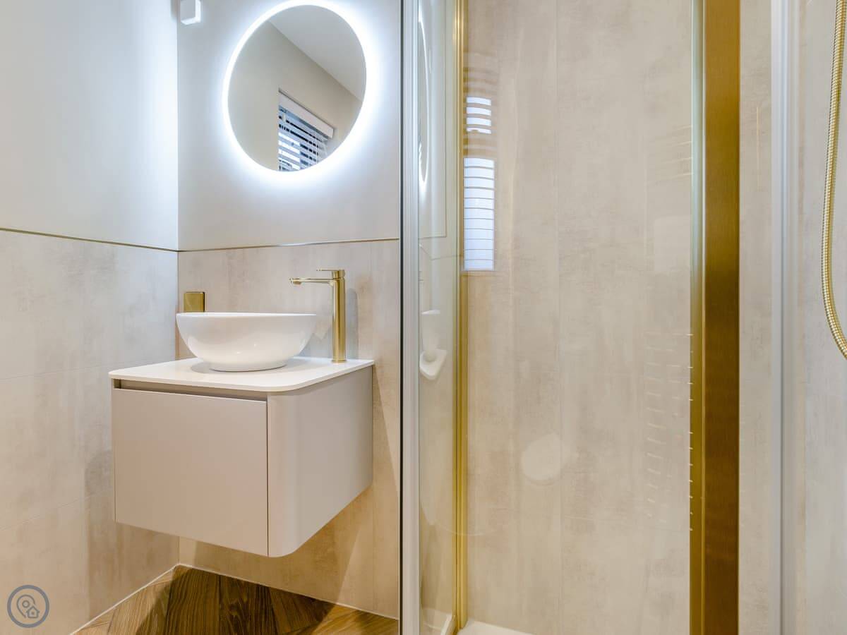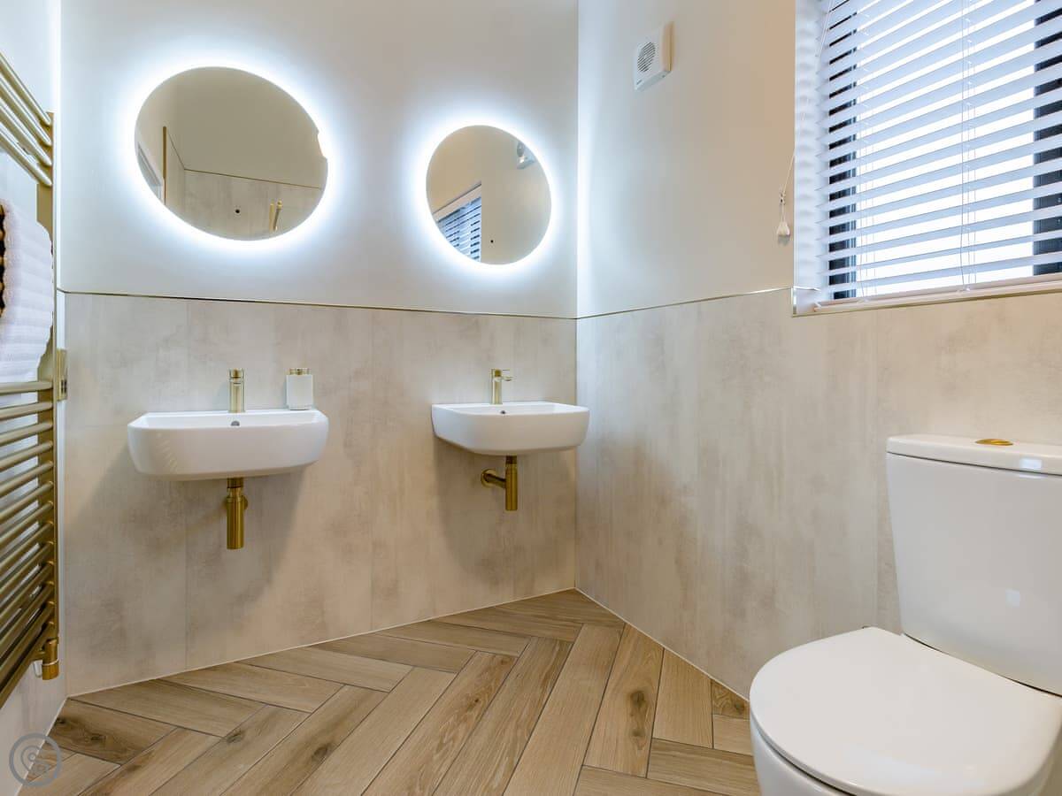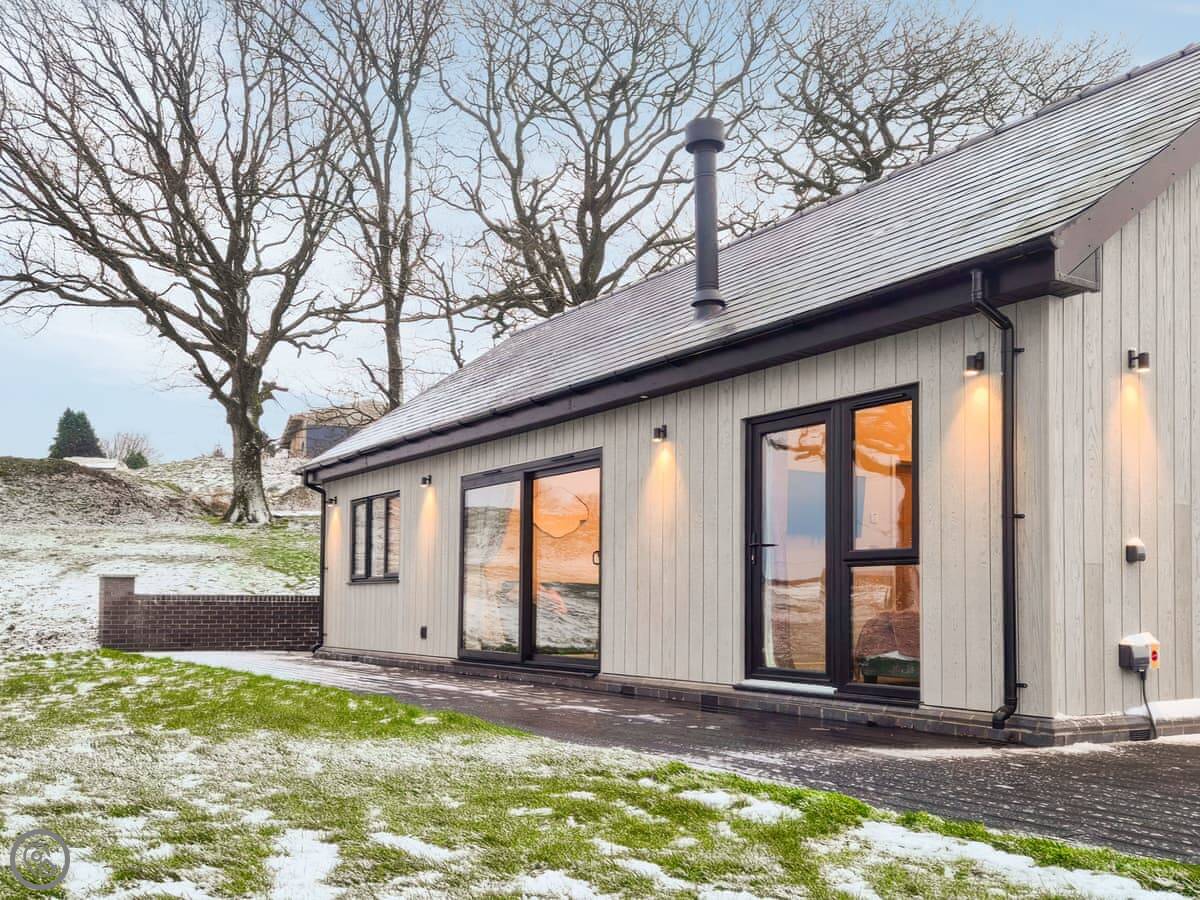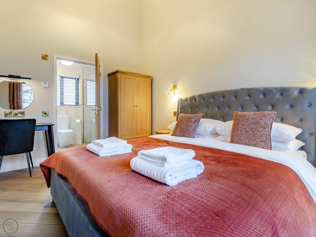 It's a five star lodge. They're quite strict with those ratings, so it means everything's new and works properly. It sleeps four. Two bedrooms, one bathroom, plus an ensuite shower room off the main bedroom. That main bedroom has a super king bed. You can make the second one up as twins or a super king.