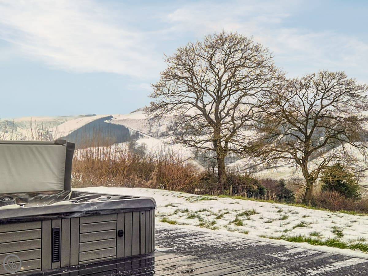 It's quiet here. You're looking out over fields. For a walk, you can go up the lane. Newtown is about three miles away for shops. The Hafren Forest is good if you want a proper woodland walk. It's about a 20 minute drive.