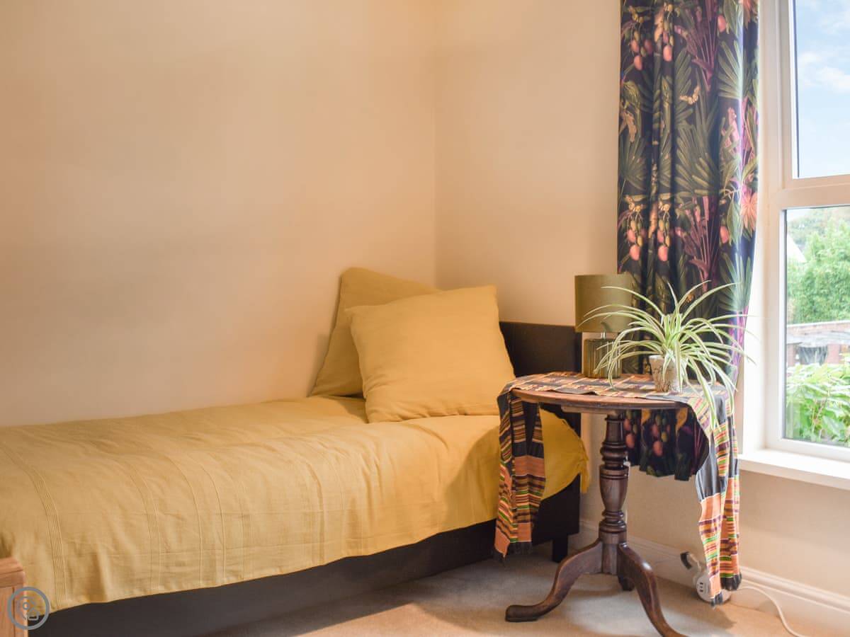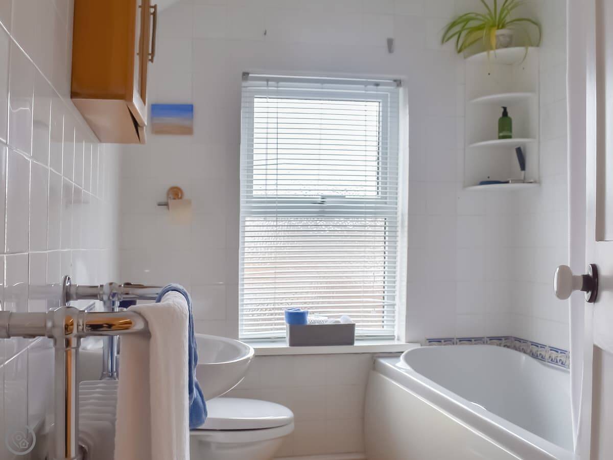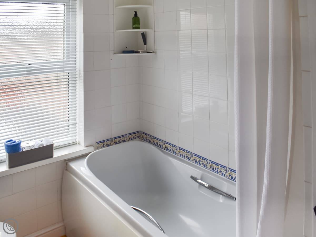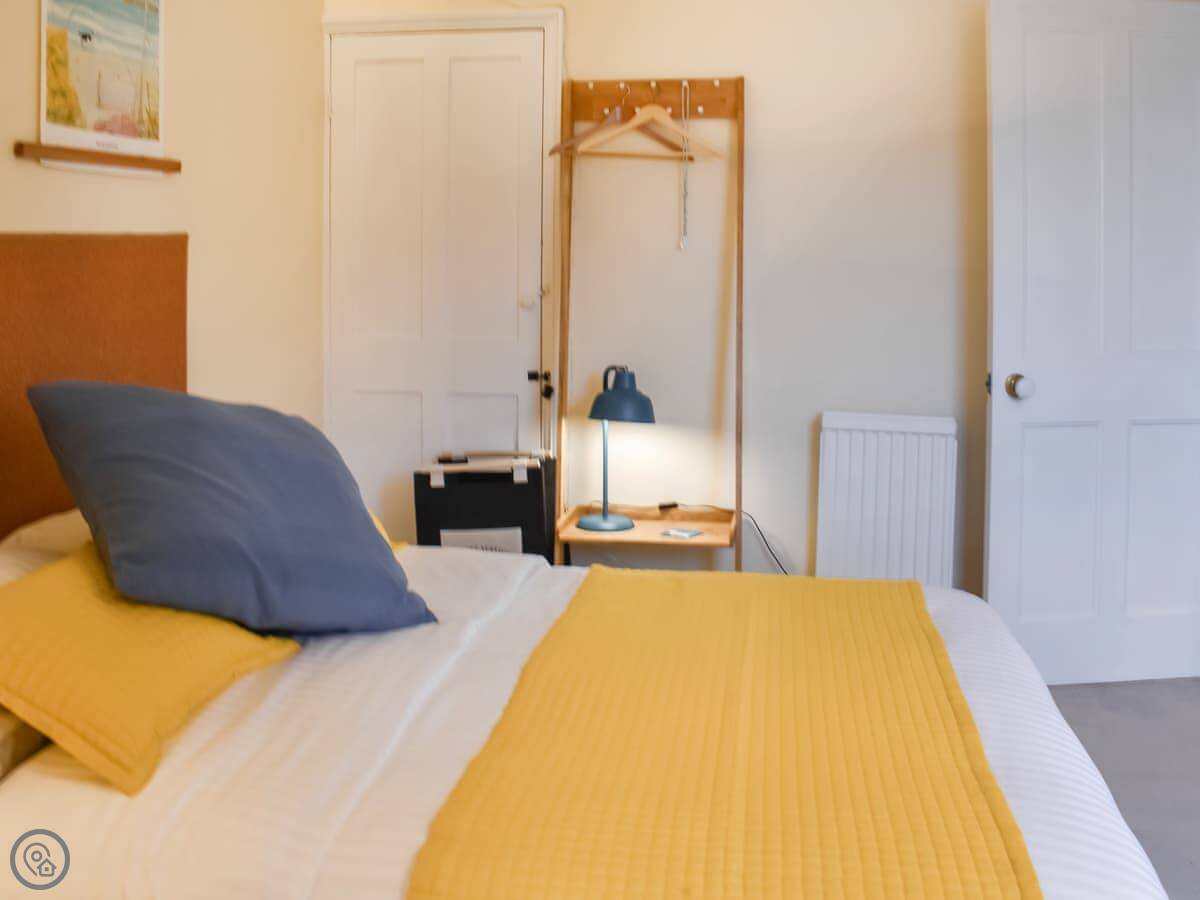 It sleeps three, two bedrooms and two bathrooms. It's got a 4 Star rating. Everything is provided, bedding, towels, wifi. There's a dishwasher and a washing machine. The garden is enclosed, which is good if you're bringing a dog. We accept one pet.