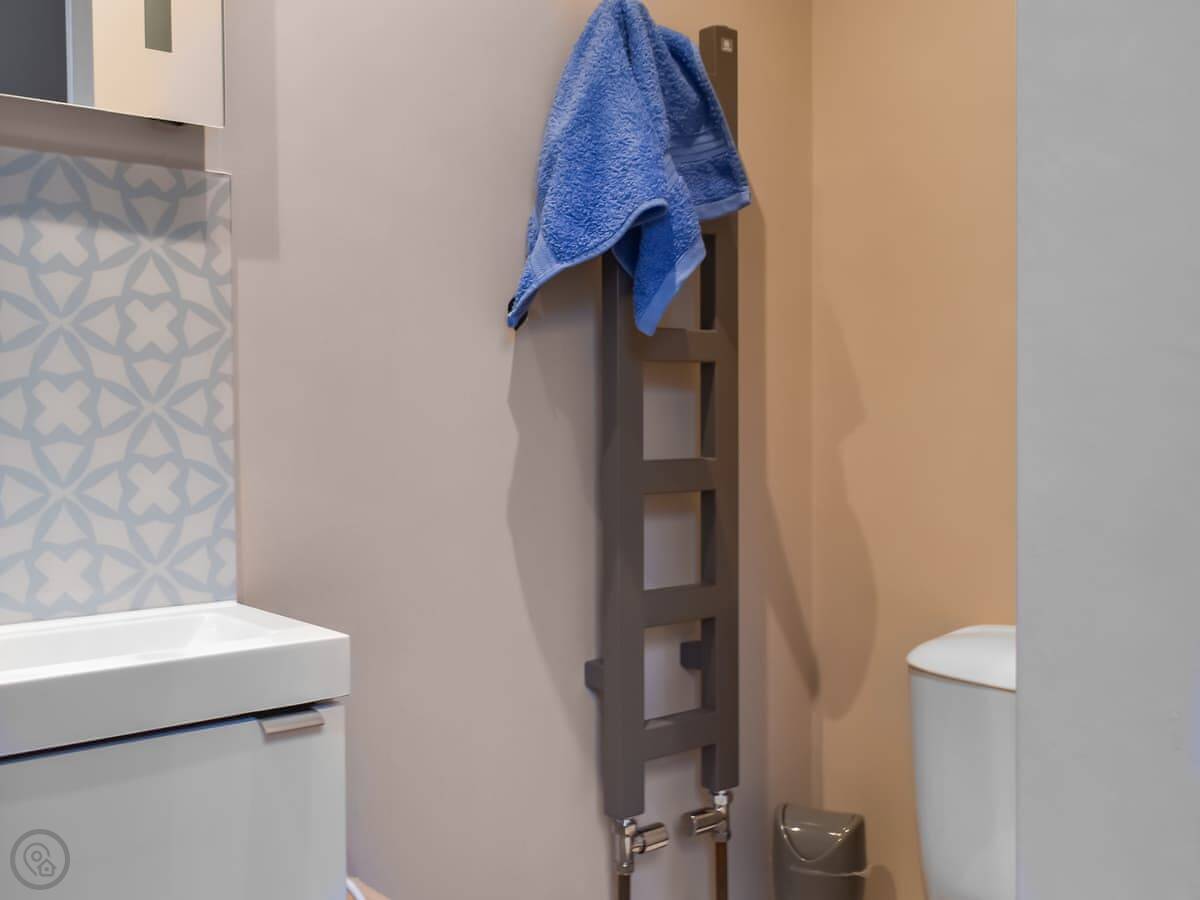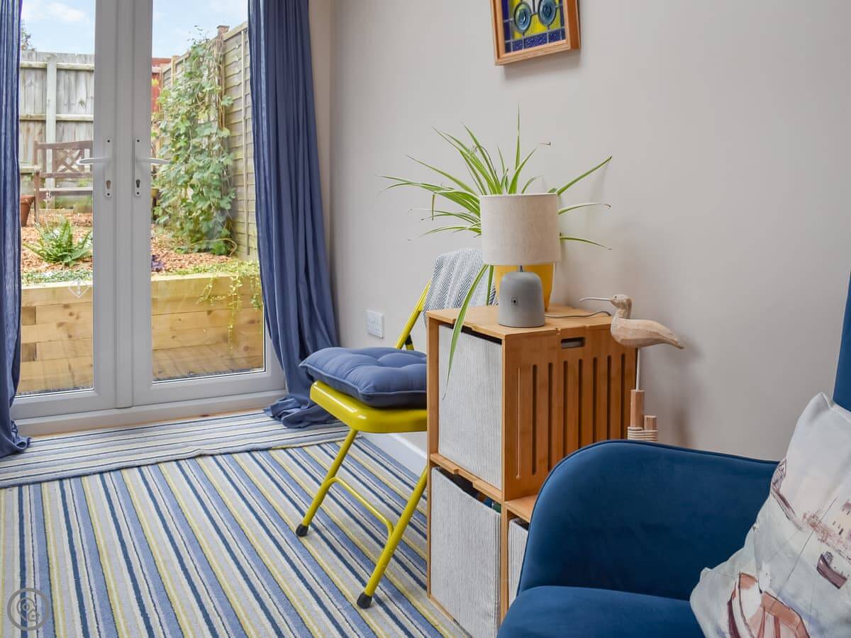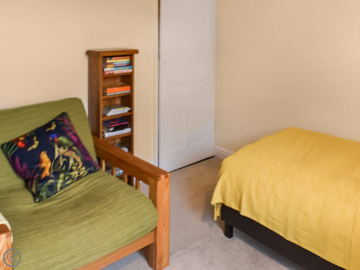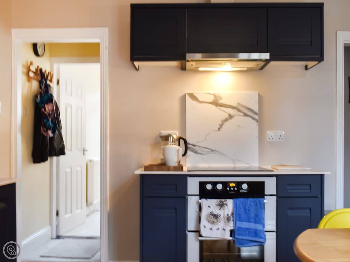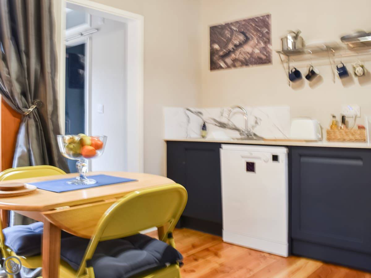It sleeps three, two bedrooms and two bathrooms. It's got a 4 Star rating. Everything is provided, bedding, towels, wifi. There's a dishwasher and a washing machine. The garden is enclosed, which is good if you're bringing a dog. We accept one pet.