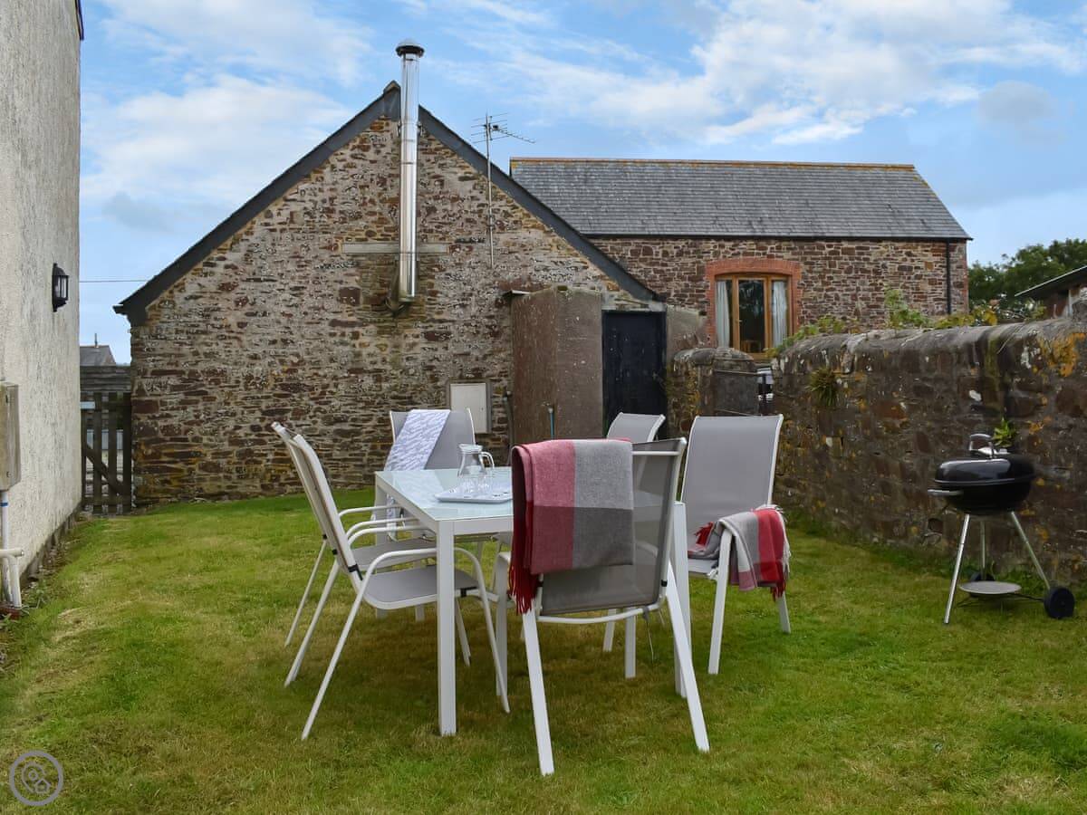 Rose Cottage is on our farm in North Beer, just outside Launceston. It's part of a working farm, so you'll see sheep and cows in the fields around you. You get your own garden with a table and a barbecue.