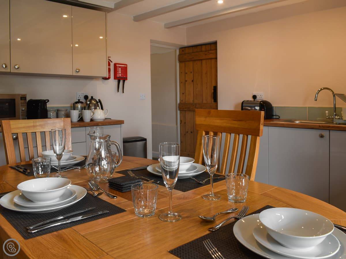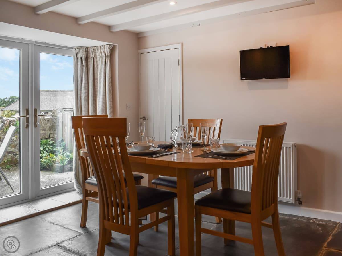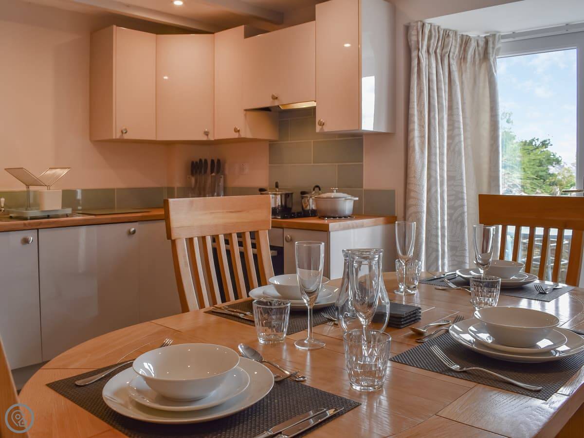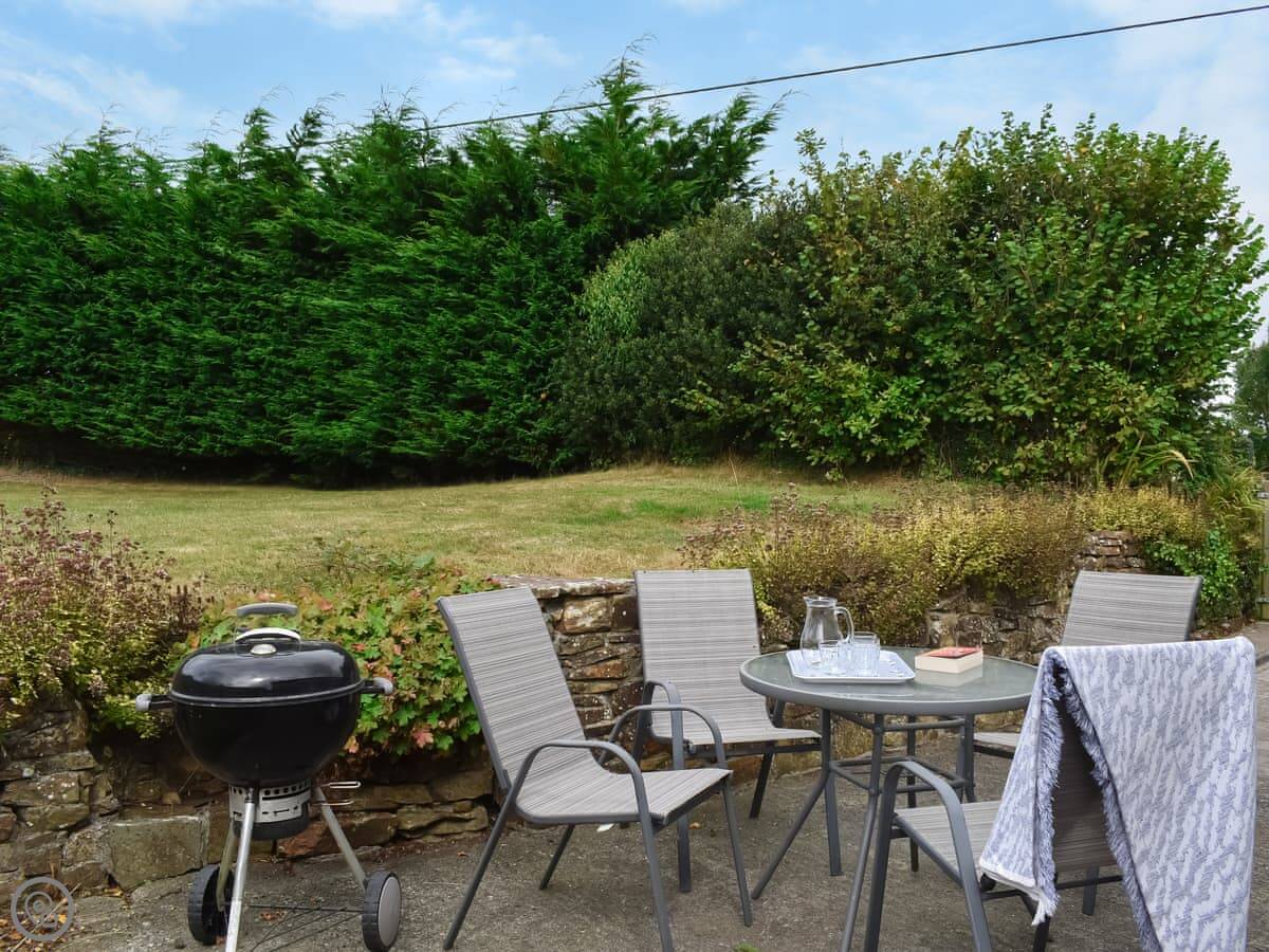 The garden is enclosed, which is handy if you're bringing dogs. We allow up to two. The patio doors open from the kitchen, and there's proper on-site parking.
