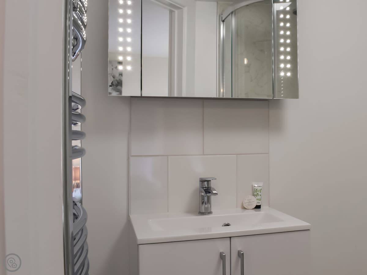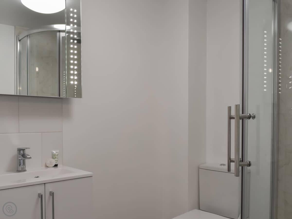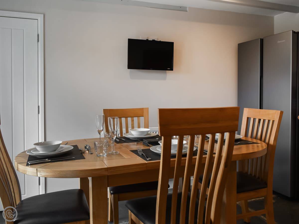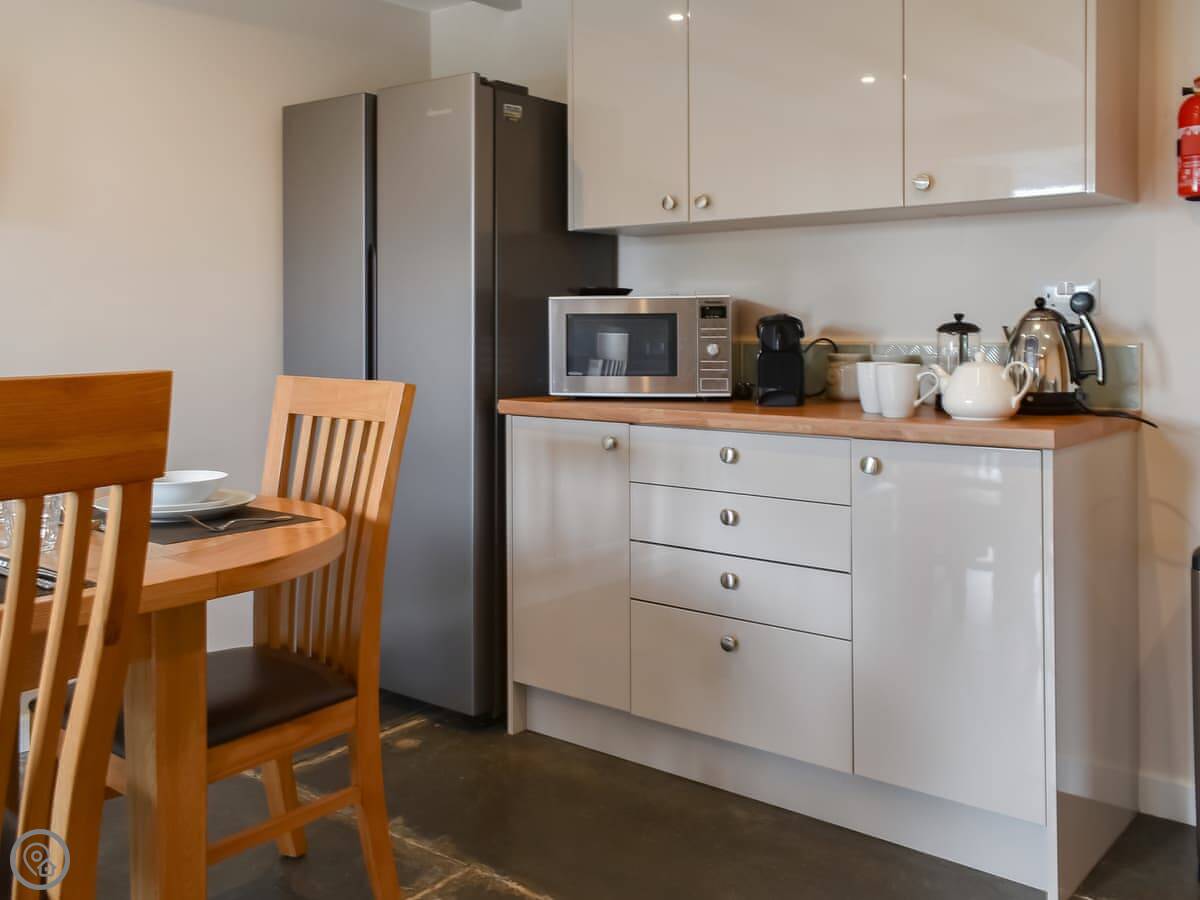 The garden is enclosed, which is handy if you're bringing dogs. We allow up to two. The patio doors open from the kitchen, and there's proper on-site parking.