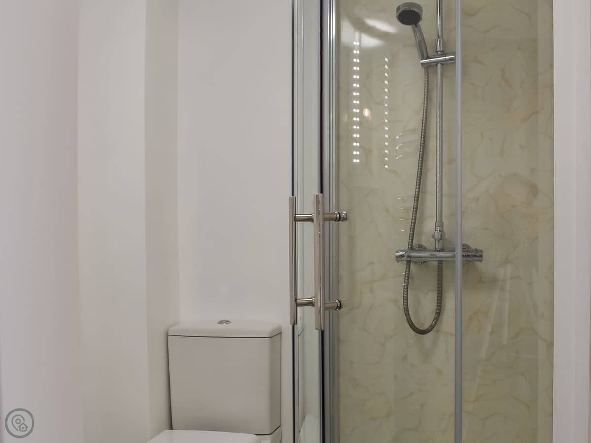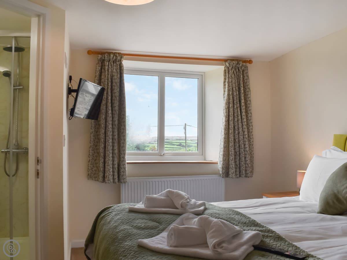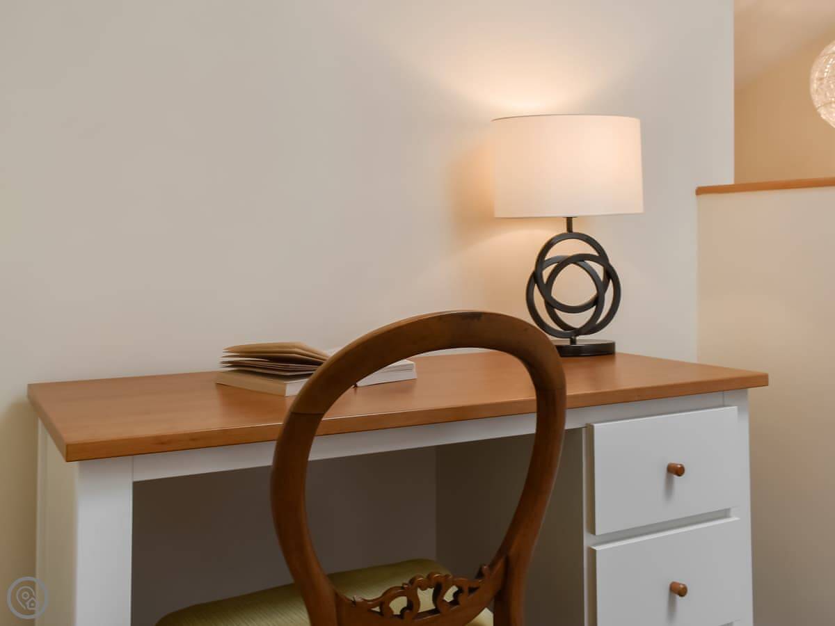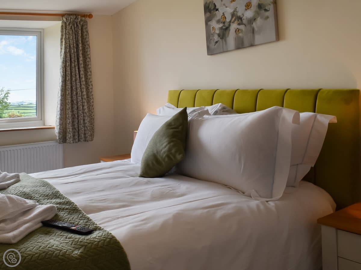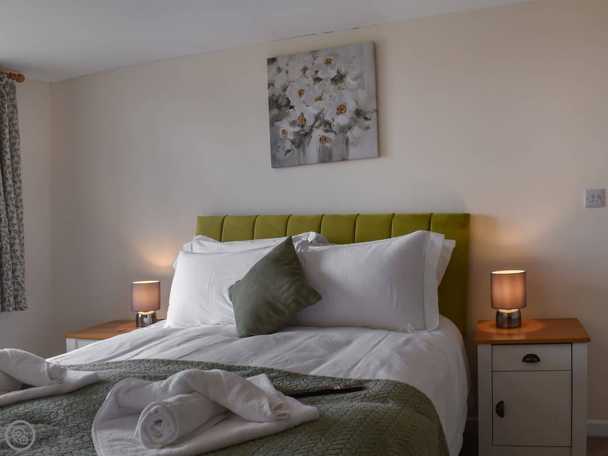 It sleeps four. Two bedrooms, both upstairs. The master has a king-size bed and its own shower room. The other bedroom has twin beds and they use the second bathroom, which is downstairs. The stairs are quite steep and narrow, typical for a cottage this old.