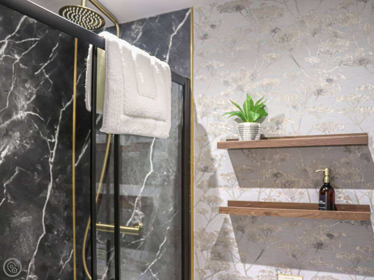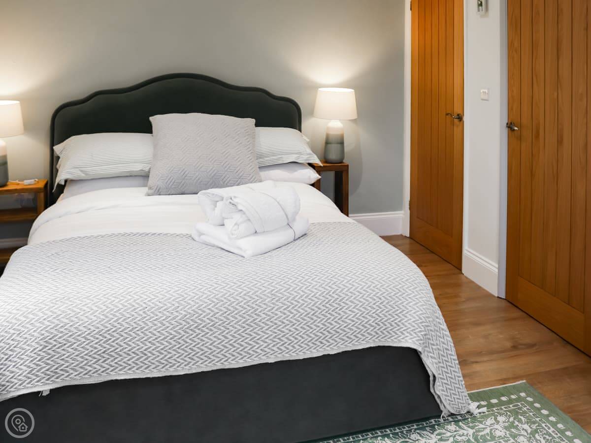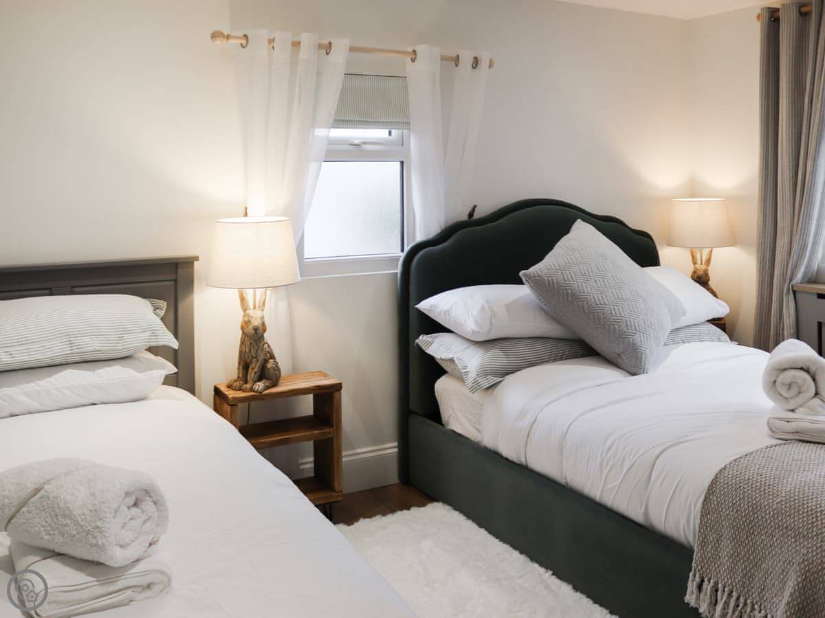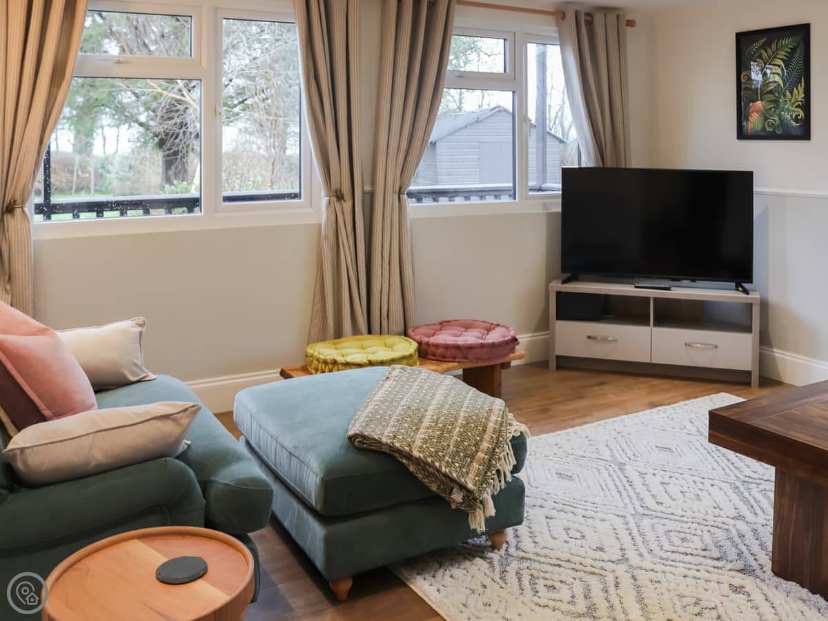 It sleeps five, in two bedrooms. Both bedrooms have their own shower room, and there's a separate toilet downstairs too. It's got a 5 Star rating, which means it's comfortable, modern and well looked after.