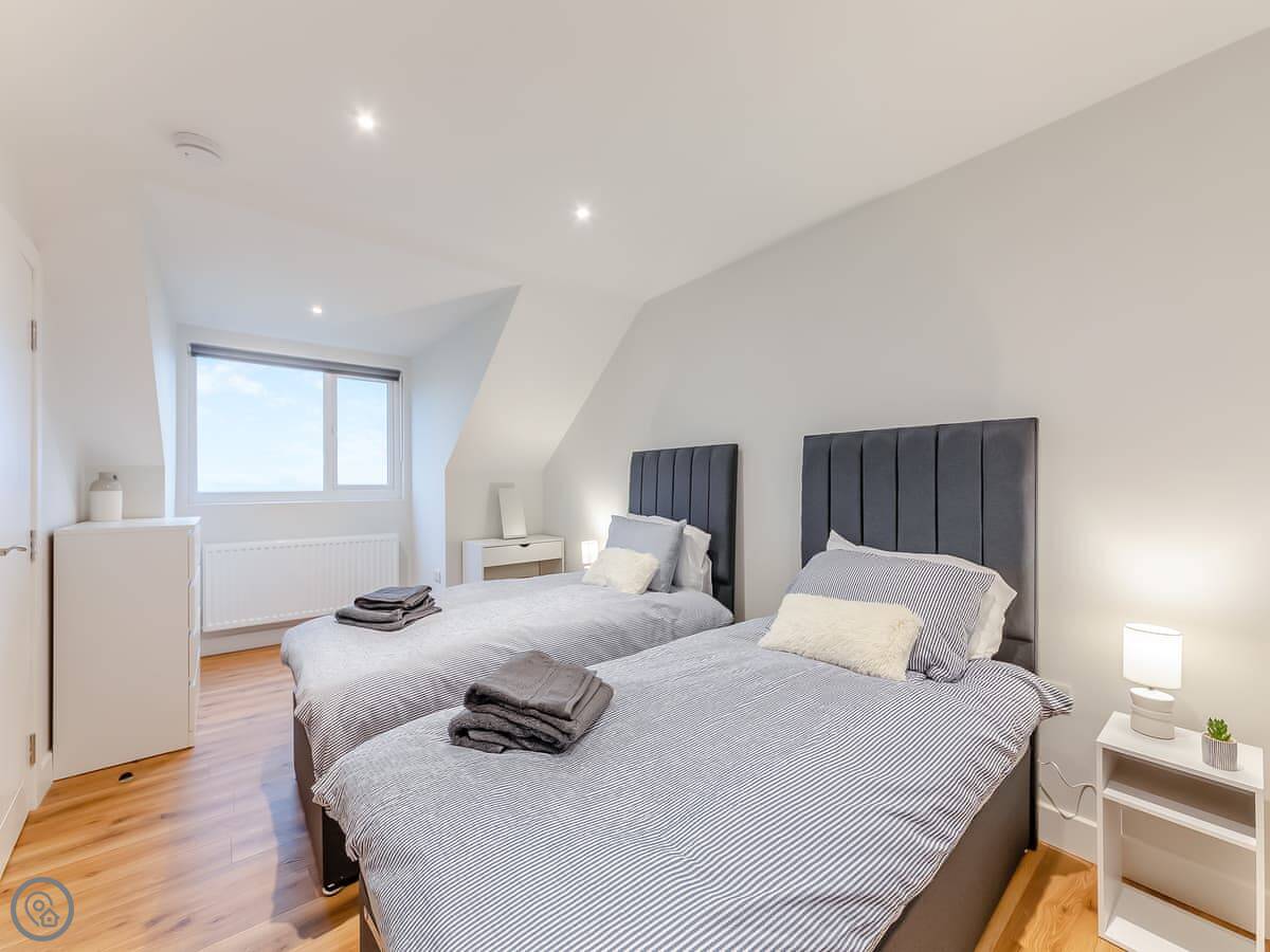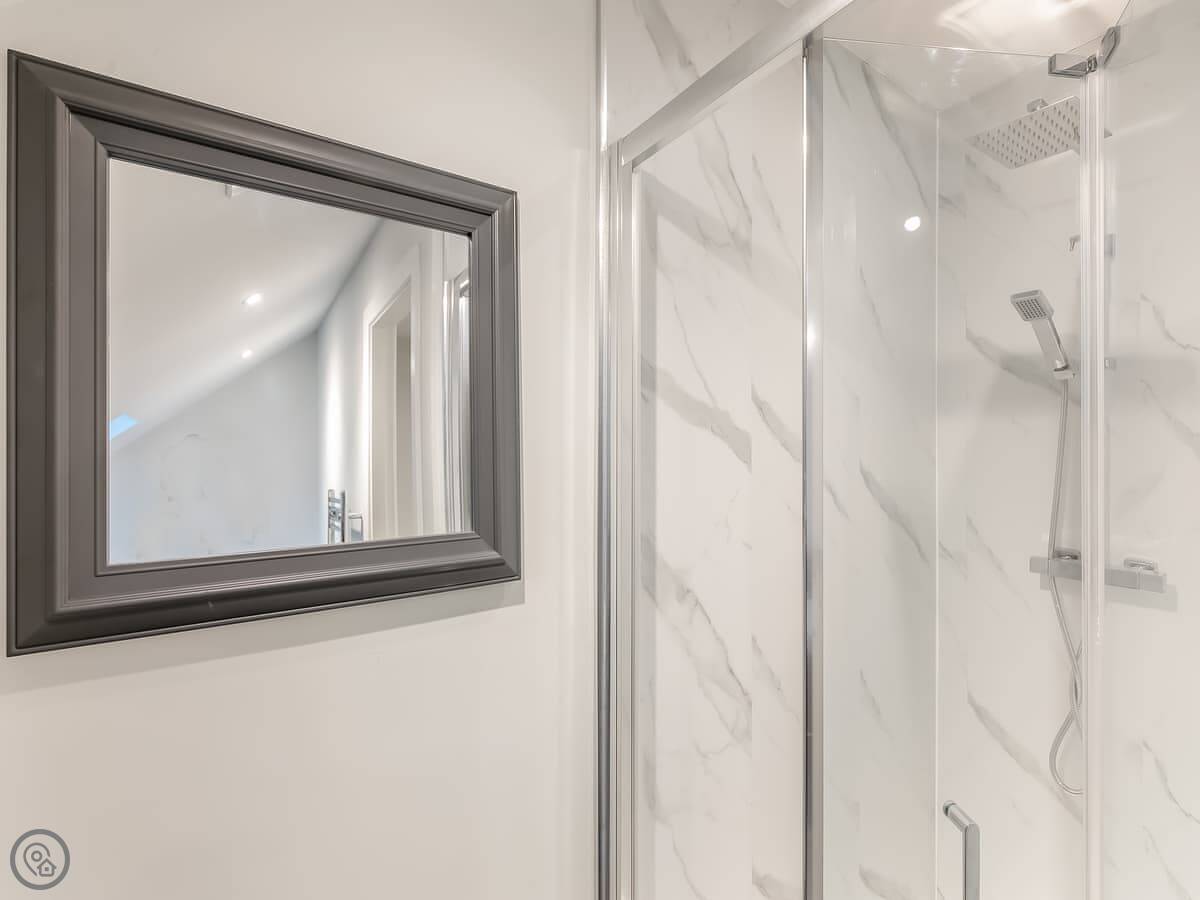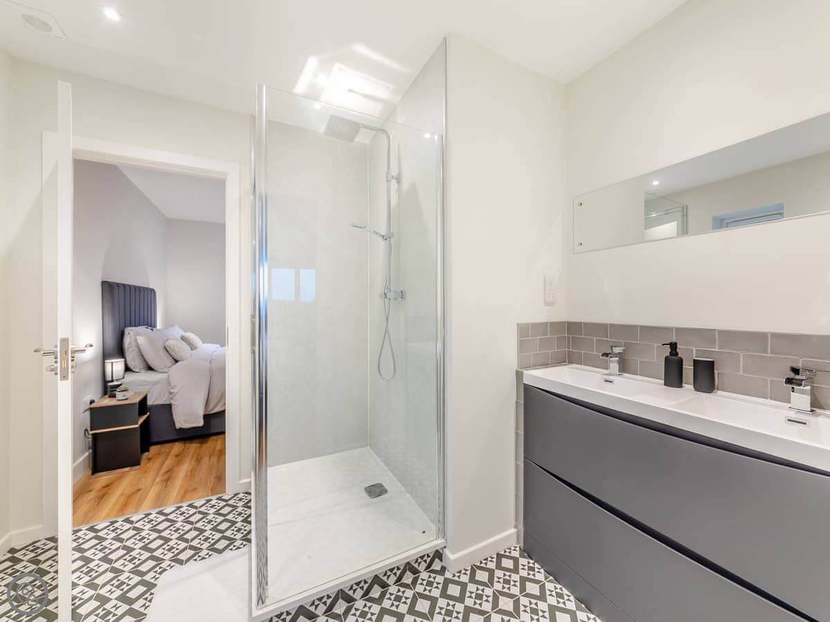 It sleeps eight, in four bedrooms. Two of those bedrooms are on the ground floor. They share an en-suite shower room between them. There's another bathroom upstairs with a bath.