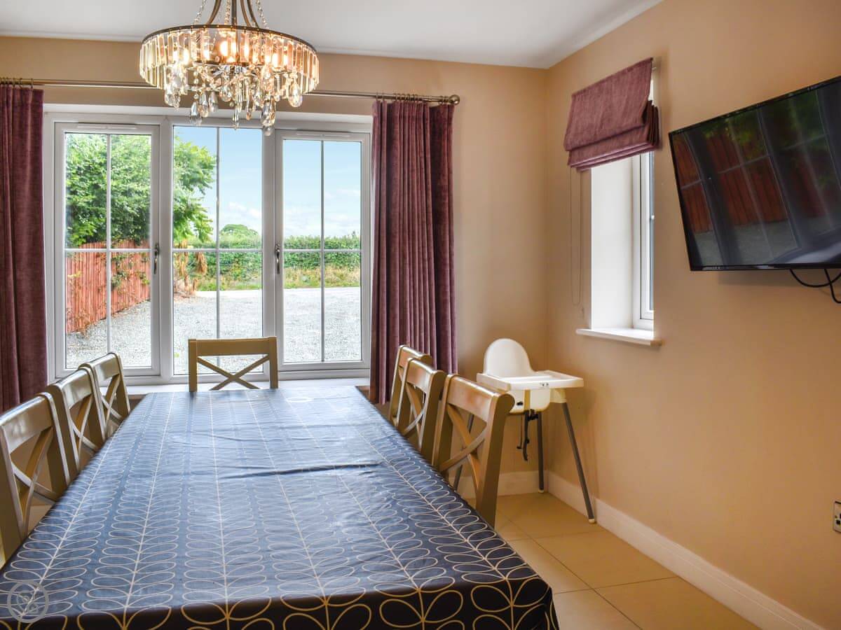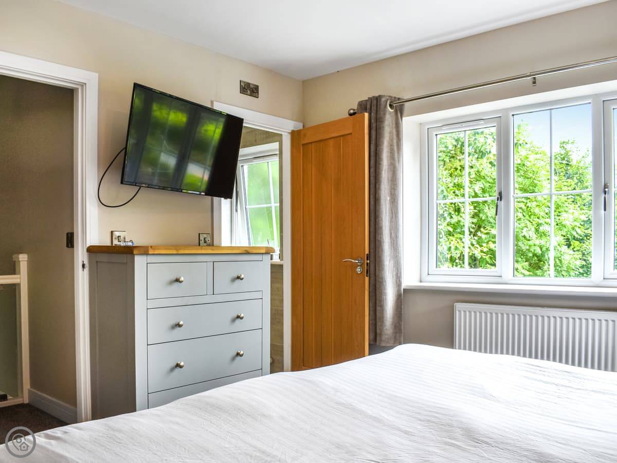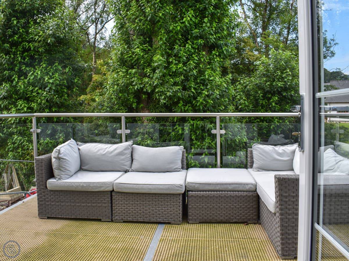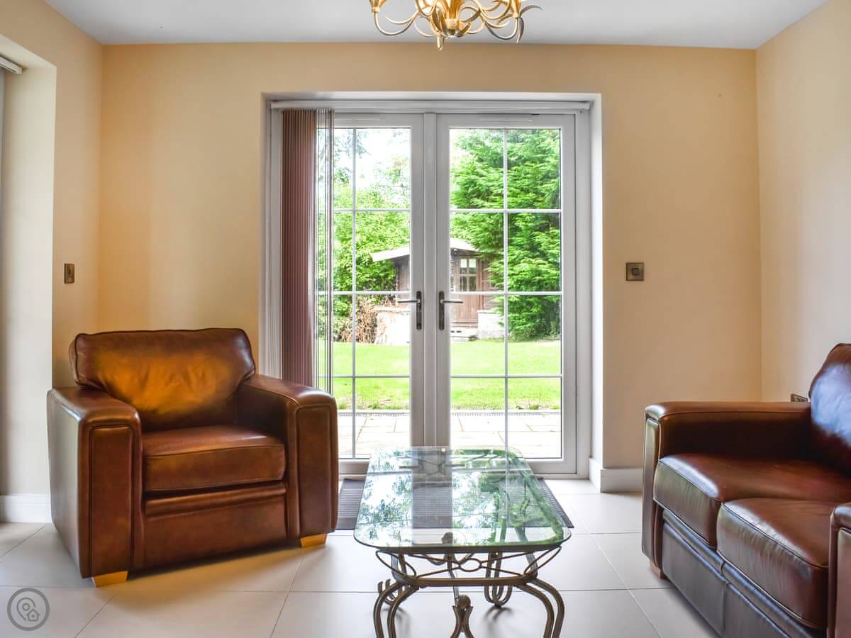 It's a rural spot, very quiet. You can see fields from the windows. Aberystwyth is a ten-minute drive. It's a decent-sized town with shops, cafes, and a long promenade along the beach.
