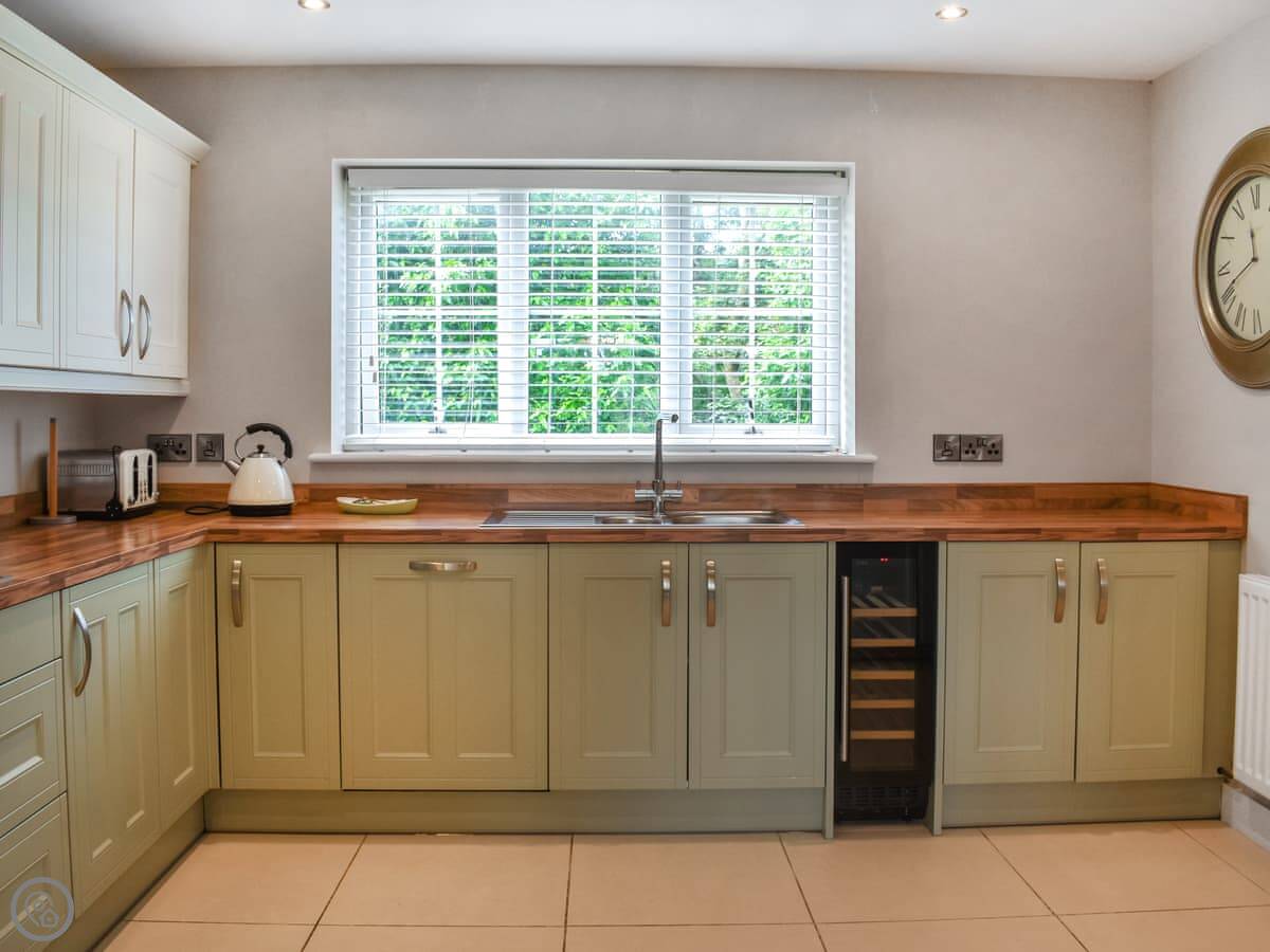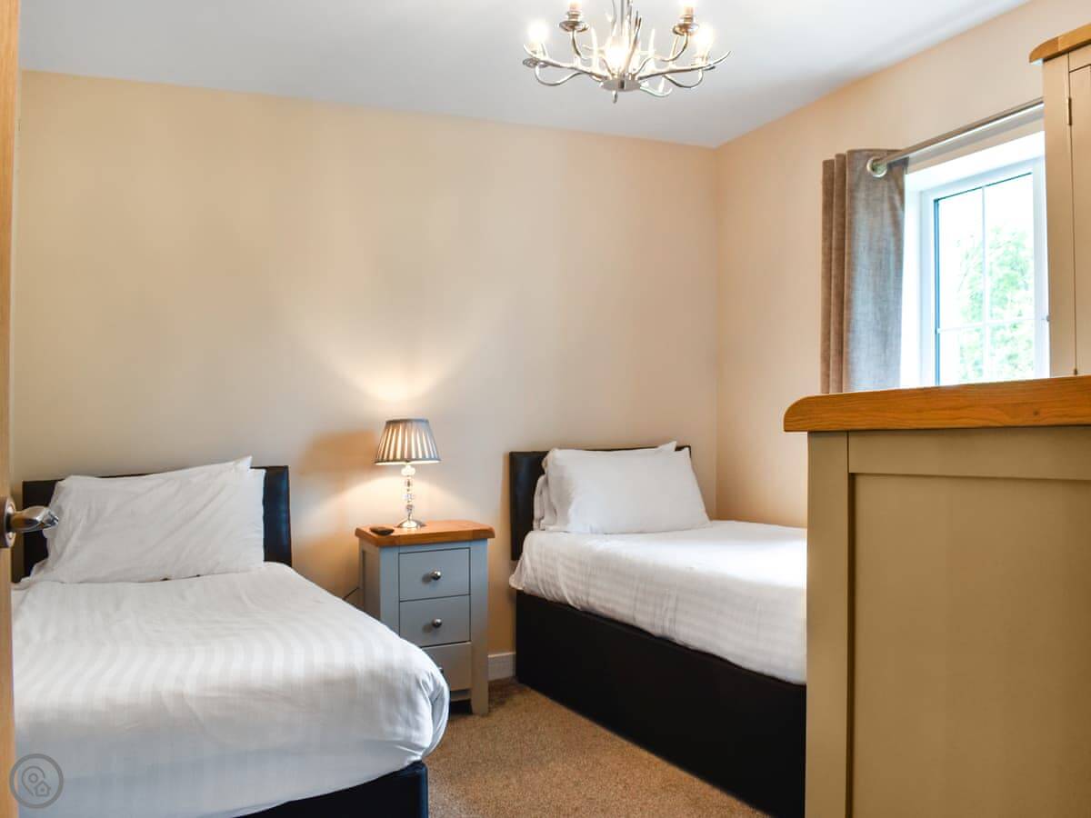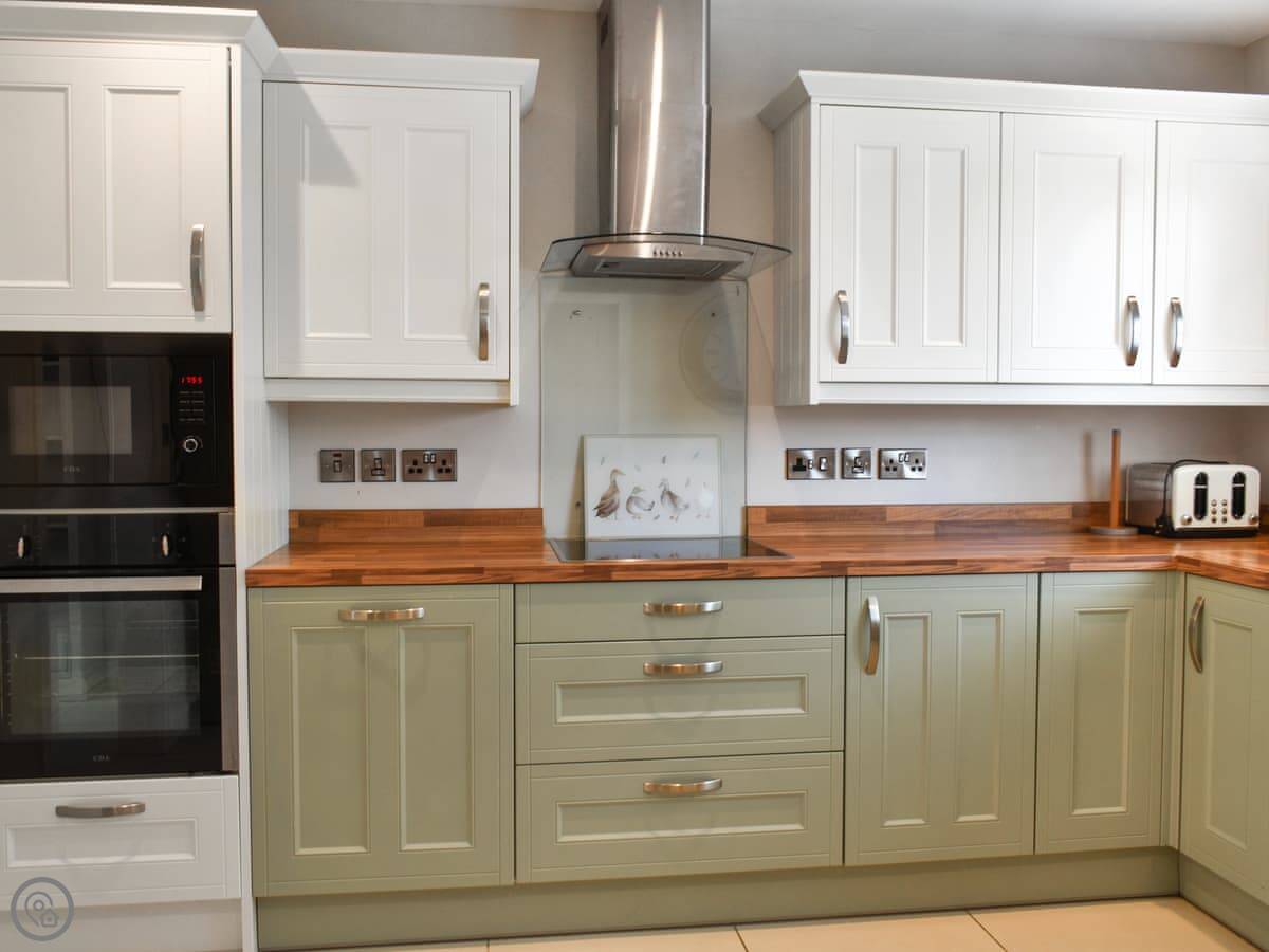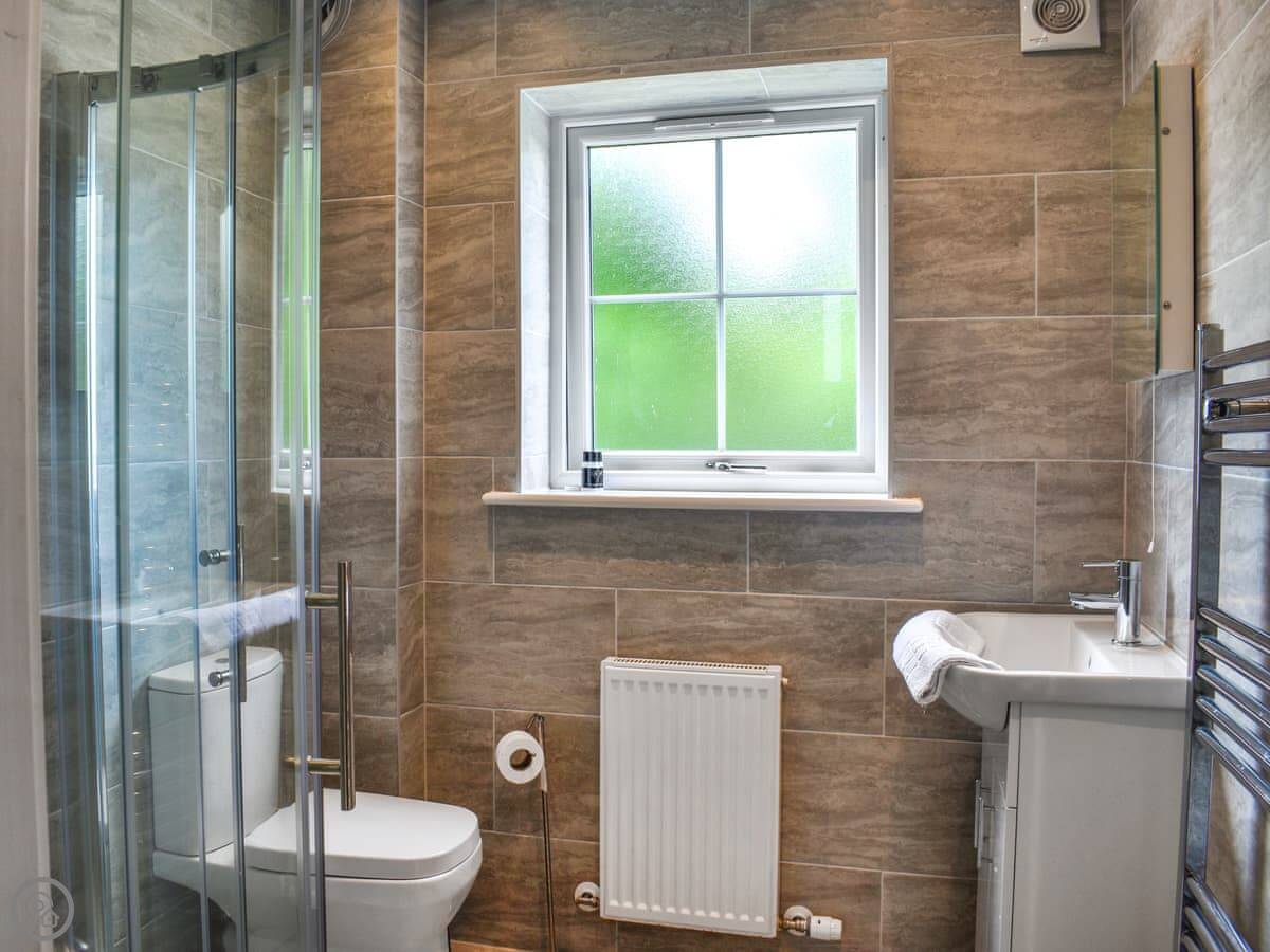 It's a rural spot, very quiet. You can see fields from the windows. Aberystwyth is a ten-minute drive. It's a decent-sized town with shops, cafes, and a long promenade along the beach.