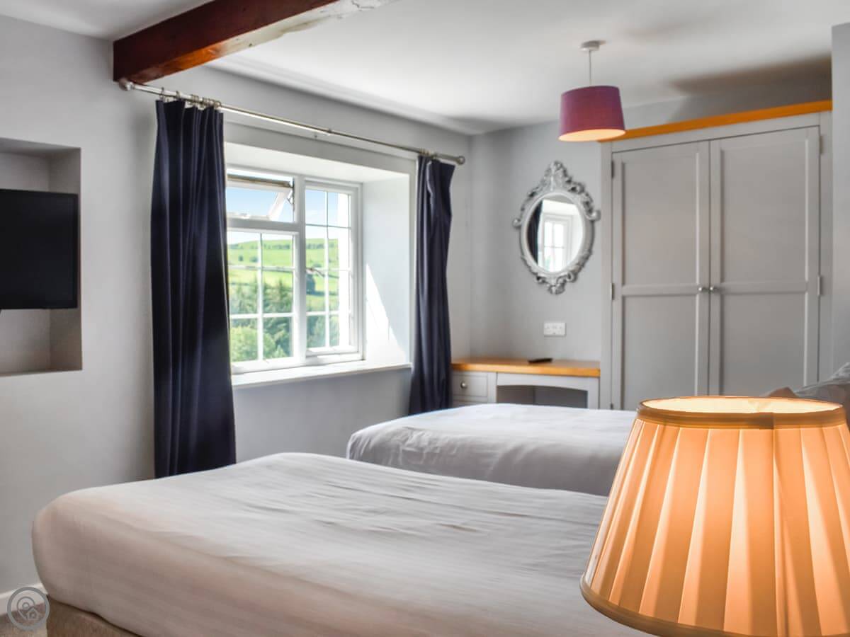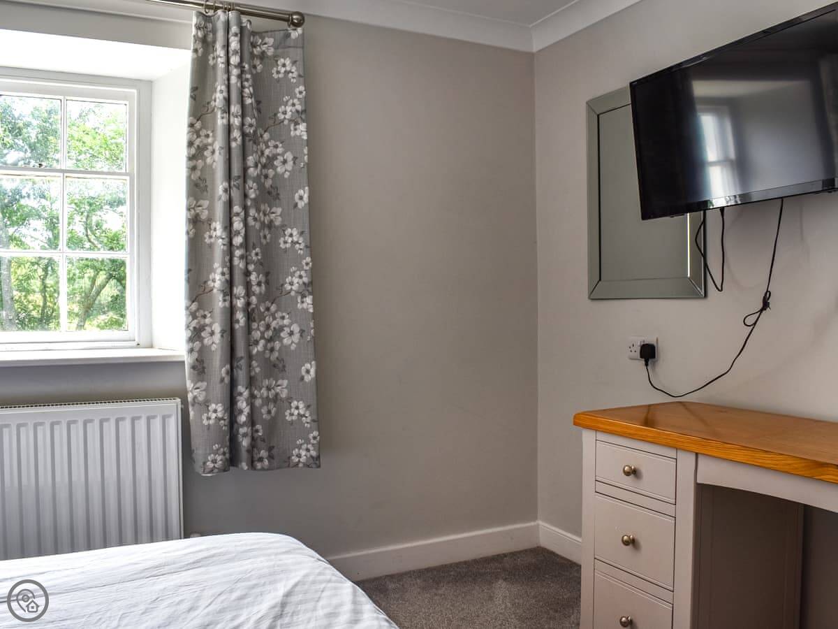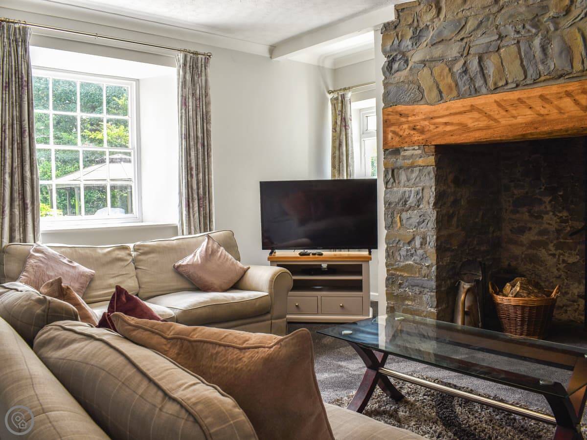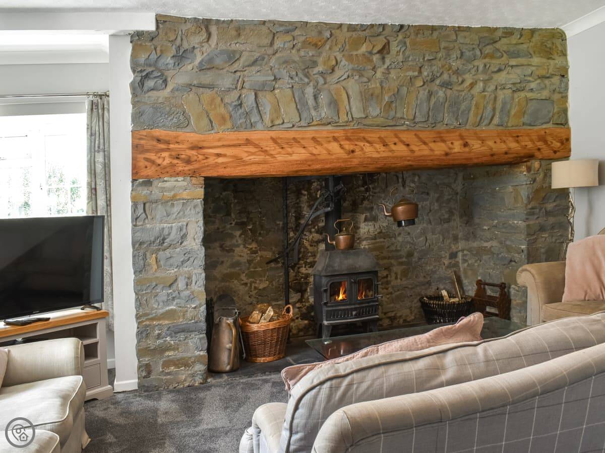 It's got a 4 Star rating. It's comfortable and well-equipped. The main room downstairs has a big inglenook fireplace with a wood burner. It's a good room for everyone to sit in.