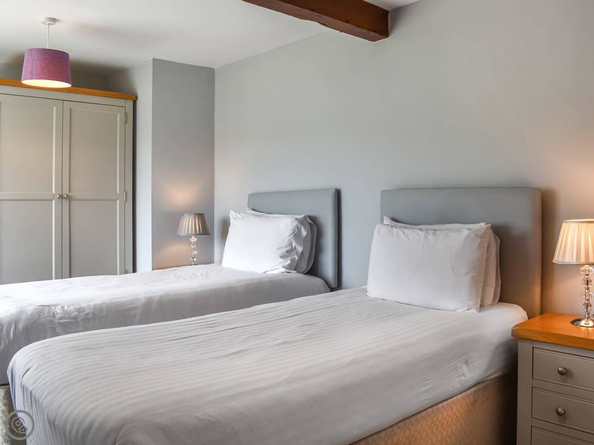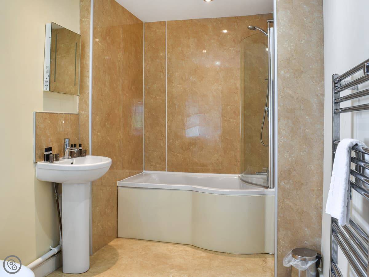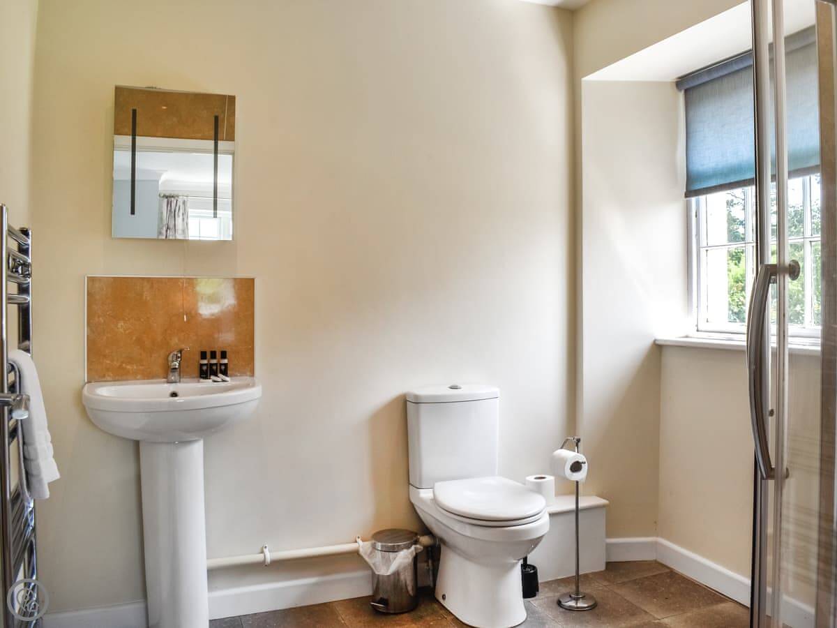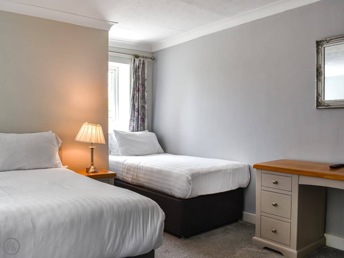 On the ground floor there's a double bedroom and a wet room shower, which is useful if someone doesn't want to use the stairs. Upstairs, most of the bedrooms are. One is a family room with a king-size bed and two singles, and it has its own shower. The other rooms are doubles, and one can be set up as twins if you prefer. The main family bathroom has a bath with a shower over it.