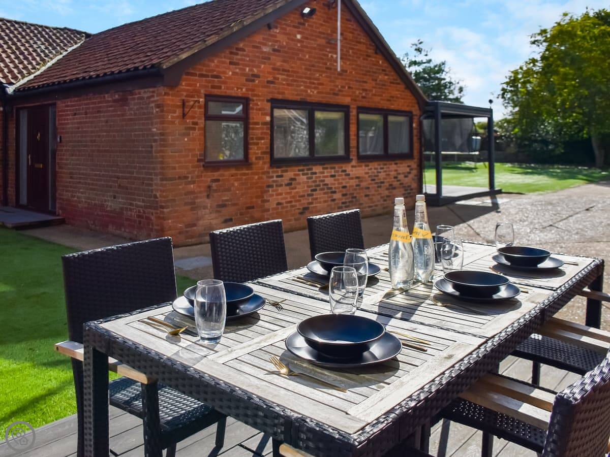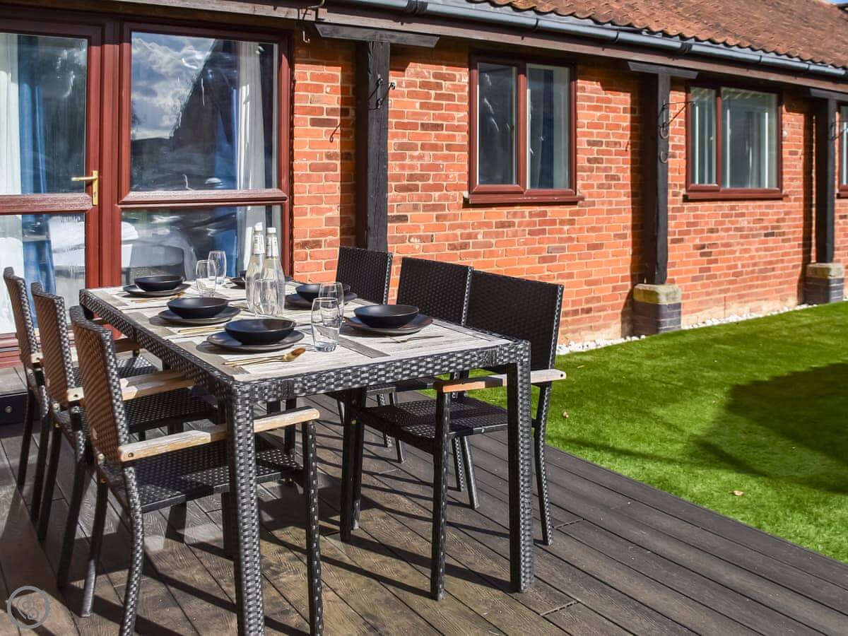 Barn Court is ours. It's a barn conversion on one floor, near Rackheath. It sleeps ten, has five bedrooms and four bathrooms. Two of the bedrooms are ensuite. It's got a 4 Star rating.