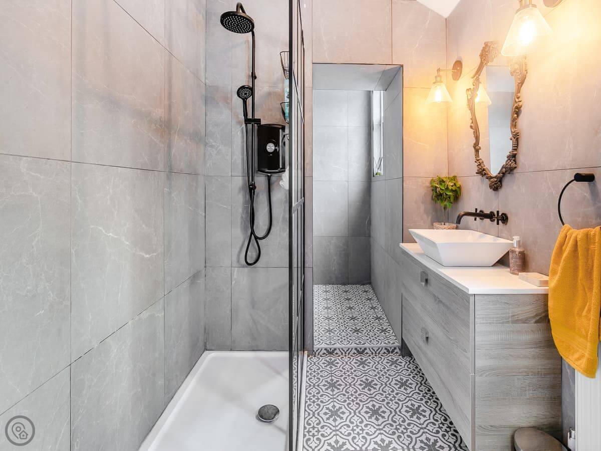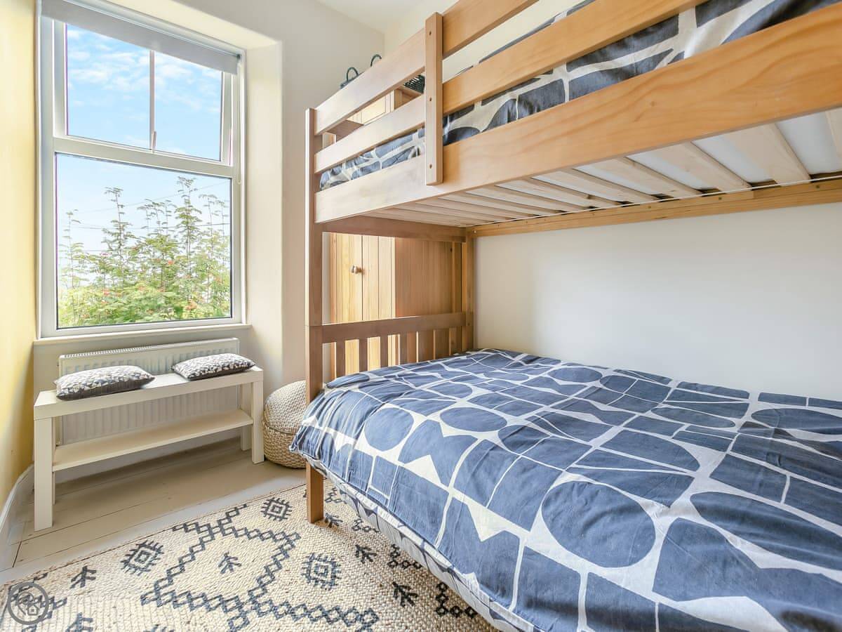 It sleeps six, over three bedrooms. There are two bathrooms, which helps. One is a shower room downstairs with a loo. It’s useful if you've been at the beach or walking the dog.