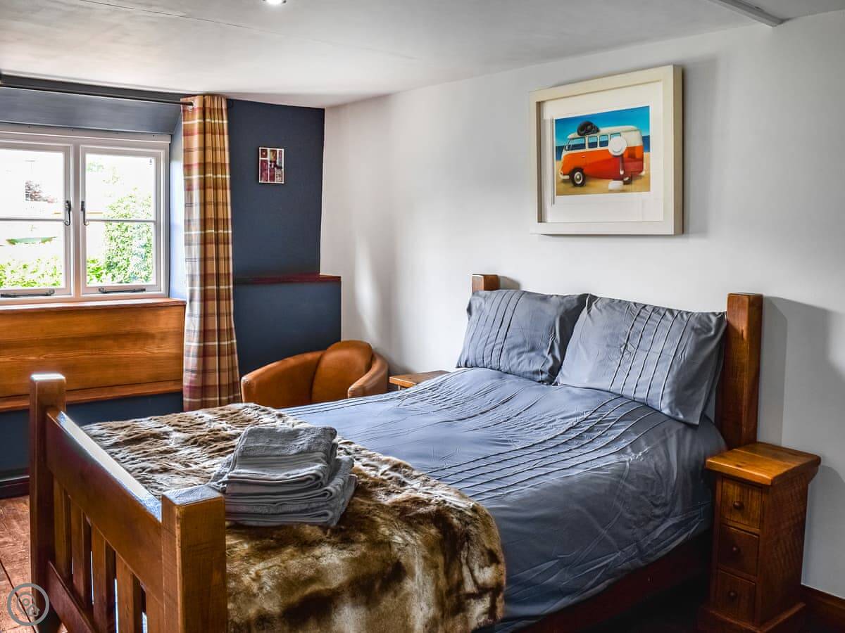 Inside, it's mostly flagstone and wood floors. The living room has a large inglenook fireplace with a wood burner. The stairs are proper cottage stairs: they work fine, but they are steep.
