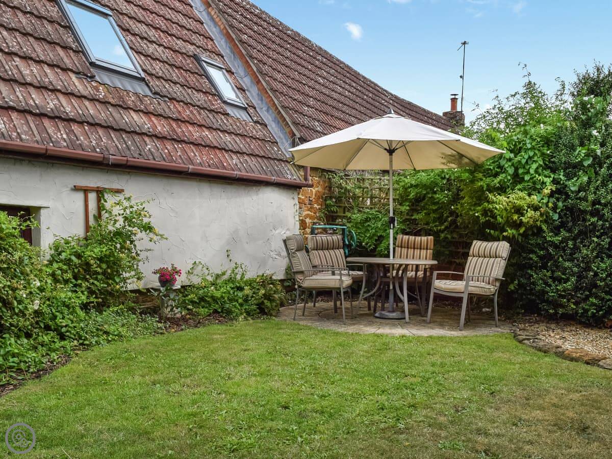This is Jasmine Cottage, in Walgrave. It's a detached house built around 1850. The garden is split over a couple of levels. It's enclosed, which is good if you've got dogs.